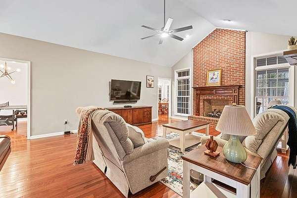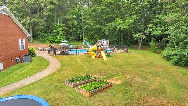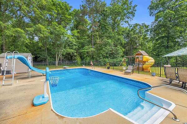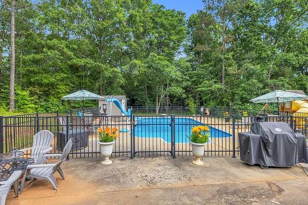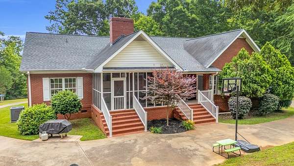 Welcome to "The House on the Hill," a North-side retreat offering space, privacy, and room to truly live. Situated on 9.27 acres, this well-maintained home delivers the perfect blend of comfort, function, and outdoor freedom. The property features a fully fenced in-ground pool, dedicated garden area, 4-wheeler and walking trails, and a goat house with fenced pen--everything you need for a lifestyle that feels open and unrestricted. Built to last and thoughtfully upgraded over the years, the home showcases newer hardwood floors and a completely redesigned primary bathroom. The excellent floor plan includes a spacious primary suite with an office/reading nook and direct access to a private screened porch. The spa-like bath offers a tile walk-in shower, garden tub, double vanities, and a walk-in closet. The kitchen is designed for both everyday living and entertaining, featuring quartz countertops, high-end appliances, a breakfast area, and a formal dining room. The living room centers around a beautiful brick fireplace with new gas logs and offers plenty of space to gather--plus, the large flat-screen TV and soundbar convey with the sale. Three additional bedrooms provide ample space, with two sharing a bathroom that includes separate private vanities for added convenience. And the showstopper? The huge 3-car garage, measuring approximately 22 x 34 feet, offering exceptional space for vehicles, tools, and all your toys. All appliances, including washer and dryer, convey. This is more than a home--it's a lifestyle of space, privacy, and possibility. Call for your private showing today!