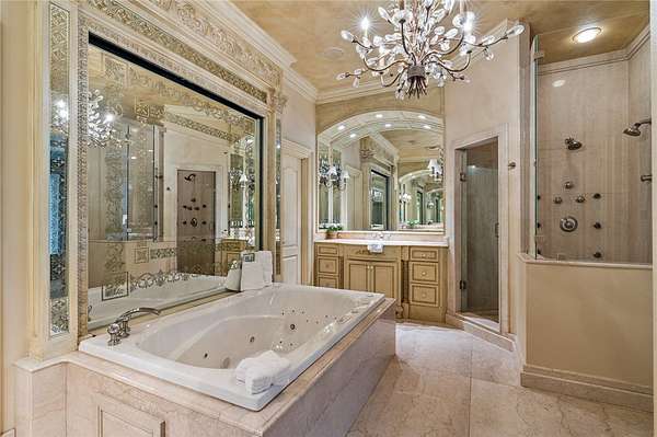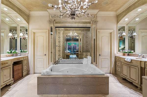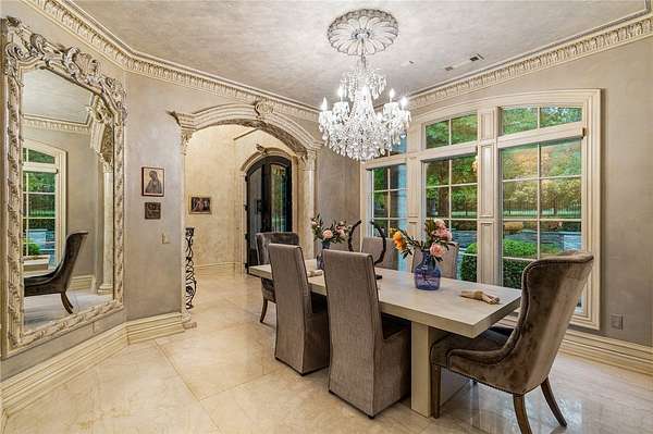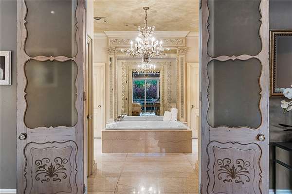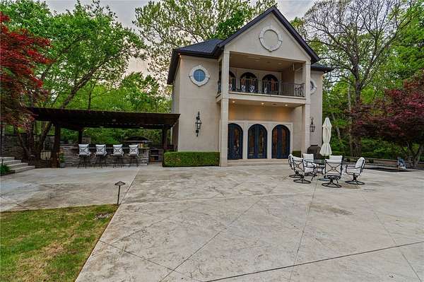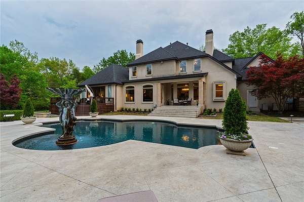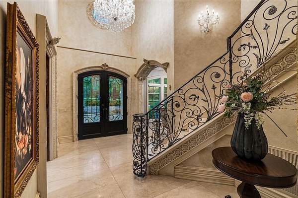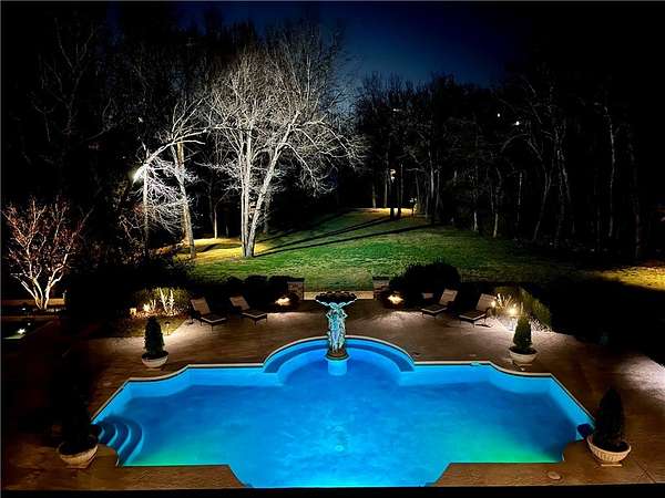Stunning resort-style living at its finest. This exceptional estate offers the perfect blend of luxury, privacy, and thoughtful design, all set on 3.27 beautifully landscaped acres. From the moment you arrive, you're welcomed by a grand entrance with a striking fountain and meticulously maintained grounds that set the tone for this one-of-a-kind property. Inside, the home showcases exquisite craftsmanship with expansive marble flooring, custom lighting, and a dramatic custom iron staircase. Designed for both everyday comfort and elevated entertaining, the home features a private office, media room, playroom, and a stunning sunken living room filled with natural light. Step outside to your own private retreat-complete with a resort-style pool, lush gardens, and serene creek frontage on two sides that meet at the back of the property, offering unmatched beauty and tranquility. Entertainer's dream, featuring a wine cellar, built-in keg tap to the movie room, and a fully equipped outdoor kitchen.