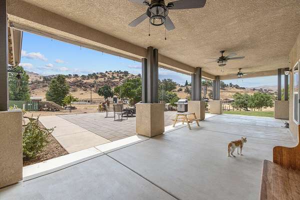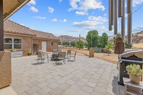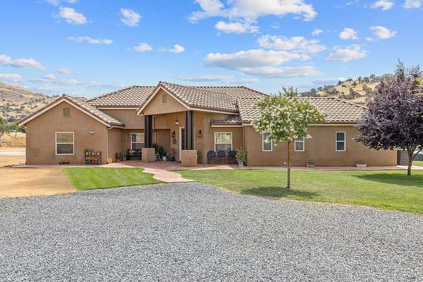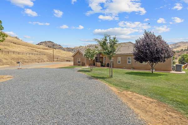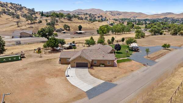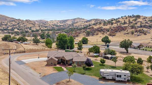 Yearning for the country life? Longing for a space to call your own with plenty of elbow room and endless possibilities? Well, you've found it! Nestled in Exeter's picturesque Mehrten Valley, this stunning 2,524 square-foot country property offers sweeping views of the majestic foothills, creating a serene and breathtaking backdrop. Boasting custom front doors, four spacious bedrooms, three well-appointed bathrooms and new living room carpet, this home is ideally situated on a generous 4.19-acre lot with owned solar, storage shed and circular pull-through driveway. Thoughtfully designed, this split floor plan provides both privacy and comfort, featuring an abundance of storage throughout. The large kitchen is a chef's delight, complete with center island, breakfast bar, beautiful quartz countertops and elegant alder wood cabinets - the perfect kitchen for creating culinary masterpieces and entertaining. The spacious living room with patio access, invites you to unwind while gazing at the panoramic vistas. Outside, relax on the oversized covered patio where you can enjoy outdoor gatherings and BBQs while soaking in the beauty of the foothills. This property is equipped with two RV hookups, complete with electricity and water, offering convenience for guests or travel enthusiasts. Additionally, the impressive 29-panel ground-mounted solar system enhances energy efficiency and sustainability. Experience the tranquility and beauty of country living, all set against the stunning backdrop of the foothills in Mehrten Valley. This is a rare opportunity to own a piece of paradise! Don't wait! Call today for your private showing and don't forget to check out the virtual 3-D tour!