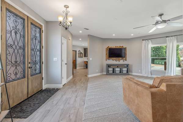 - Breakfast Bar, Ceiling Fan(s), Entrance Foyer, Granite Counters, Kitchen Island, Pantry, Recessed Lighting