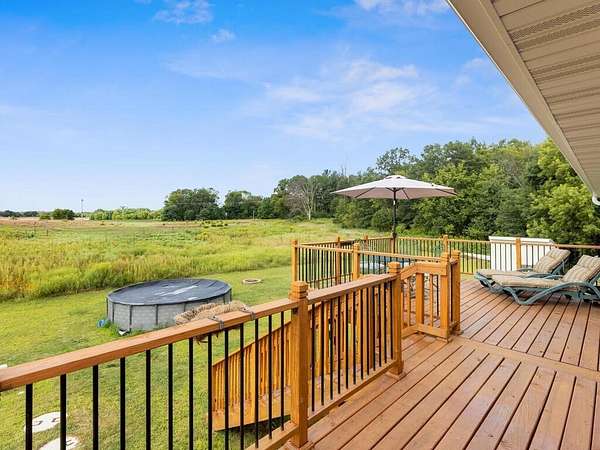 That New Home Smell! Acreage Home Built in 2022 offers a perfect blend of modern comfort and peaceful country living. A level lot with mature tree line to the north, improved landscaping, Gutters/Downspouts, storage shed and large back deck already added.