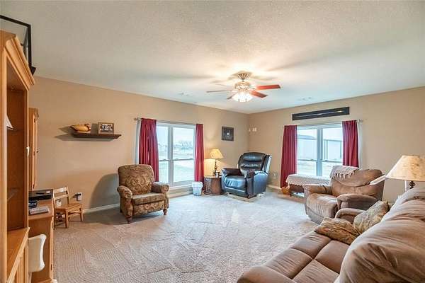 Outside you will find a two car garage, water well, sprinkler system in the front and back yards, storage building, storage container with shed, spots to park your RV, and a hot tub that stays with the home. Class 4 roof is still under warranty. Plenty of space to enjoy country living while still being close to town.