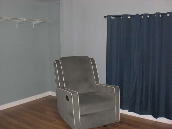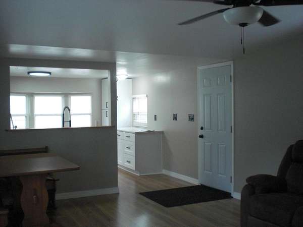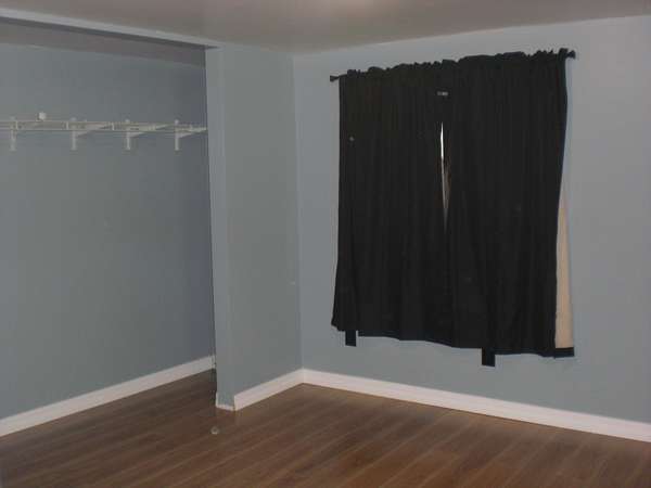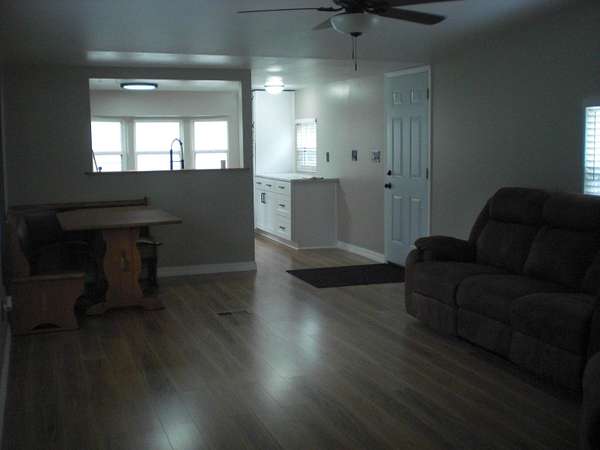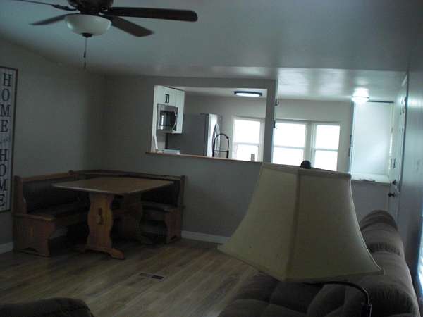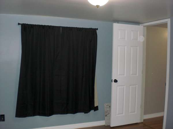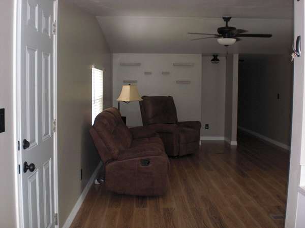 - Blinds, Ceiling Fan, Curtain Rods, Drapes, Vaulted Ceiling(s), Wood Laminate