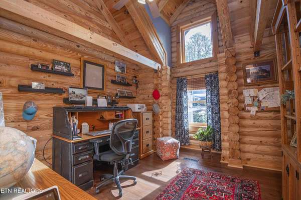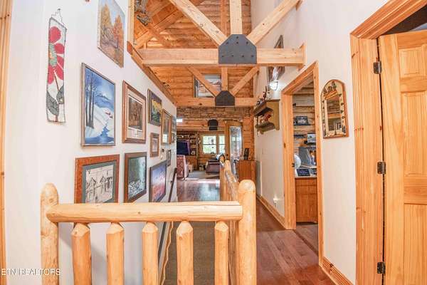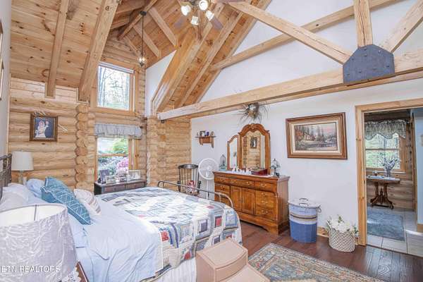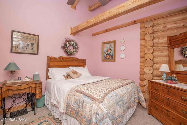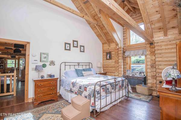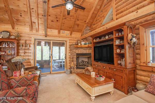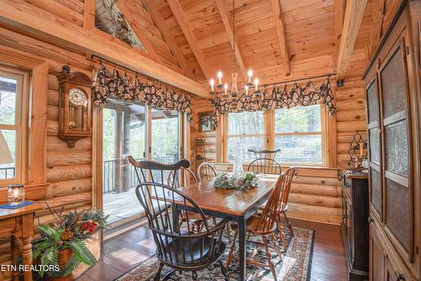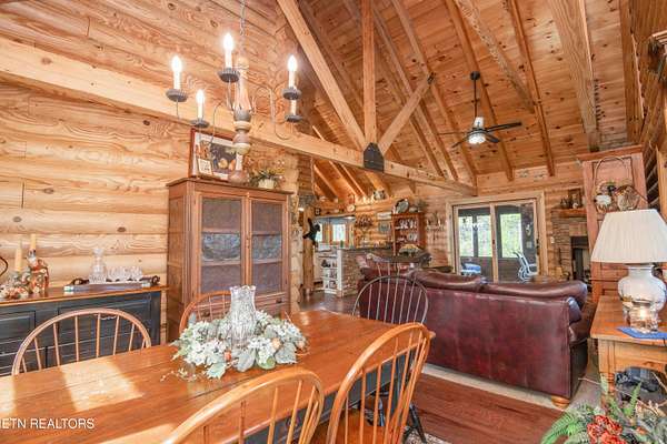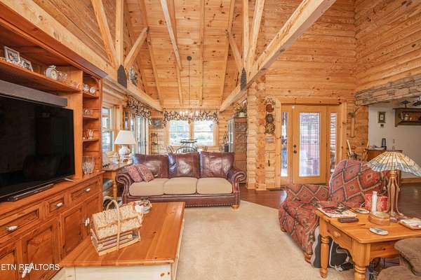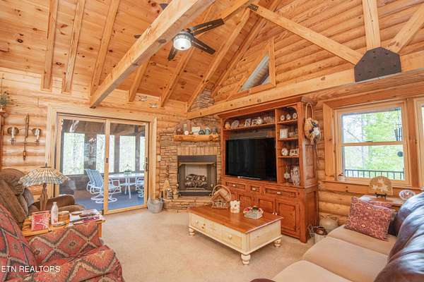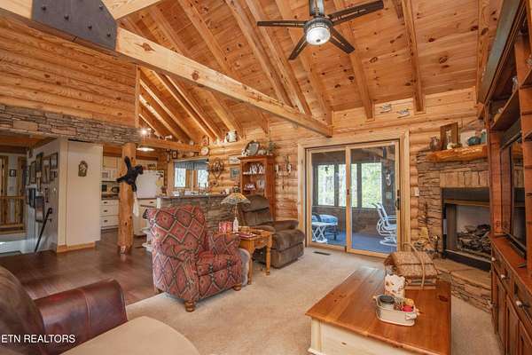 Stunning 2 story Custom built Jim Barna Log Home on 1.72 acres. Lovingly maintained by original owners, with 3 generous bedrooms, 3 full baths, living room, dining room, kitchen w/breakfast nook for coffee. Downstairs, flexroom, w/full bath, and access to the outside. 2 car garage, ample parking, firepit area, screened in porch, lots of updates. Incredible opportunity for a 2nd home, rentals allowed. 2 fireplaces, back up generator for peace of mind. Koi pond in front w/a wonderful water feature. Book today!!