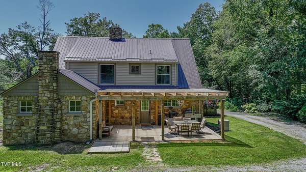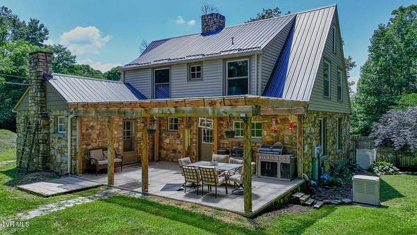 This beautifully restored historic stone home sits on 3 peaceful acres just 2 miles from downtown Damascus and 9 miles from Abingdon. Enjoy the perfect blend of privacy and convenience in a quiet neighborhood with scenic surroundings. Inside, you'll find original hardwood floors, three stone fireplaces with gas logs, and a fully renovated open-concept kitchen featuring granite countertops, pot filler, stainless steel appliances, and farmhouse sink. A Schlage keyless entry opens to a cozy patio with covered pergola, grill, and outdoor dining space--ideal for relaxing or entertaining. The spacious living room connects to a large covered porch. The home offers 3-4 bedrooms (including a private ground-level entry room), three updated bathrooms, and basement plumbing ready for a fourth. The partially finished basement includes a laundry room, bar area, wine/canning room, and a mechanical room with a large safe. Upgrades include Lutron lighting, PEX plumbing, a dual heating system (gas/electric HVAC and an exterior wood stove), dual water heaters, two freezers, and a Generac backup generator. Most windows are updated, with select originals preserved for character. Outdoor Highlights: Semi-paved circular driveway with rear access 24-ft above-ground pool (plumbed for power and heat) Mature Orchard, large garden, 6x8 greenhouse, and water feature Firepit, 2-story outbuilding, workshop with loft and freezer. Barn with pasture, chicken coop, and underground utilities (ready for hookup) Children's play area with playhouse and playground Security system with cameras and high-speed Point Broadband Internet. With frontage on three roads, no nearby development, and no storm damage history, this home offers long-term peace of mind. A rare combination of historic charm, thoughtful updates, and stunning outdoor space--schedule your private tour today! *Please ensure all lights are turned off after showing. IT IS THE SOLE RESPONSIBILITY OF BUYER AND BUYER AGENT TO VERIFY ALL INFORMATION CONTAINED HEREIN