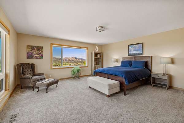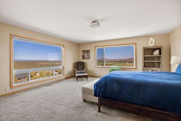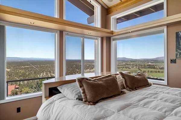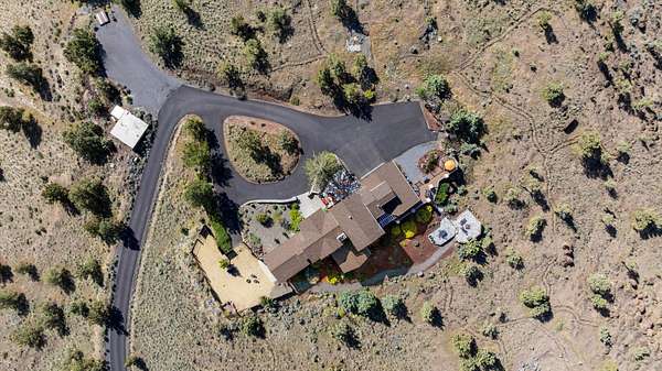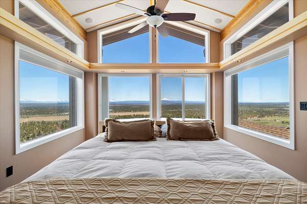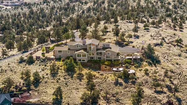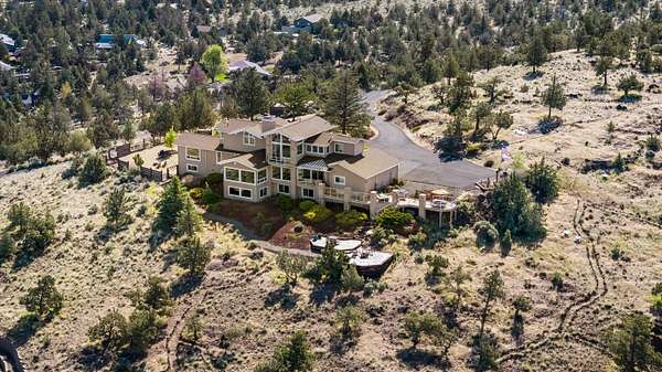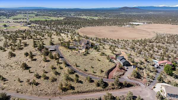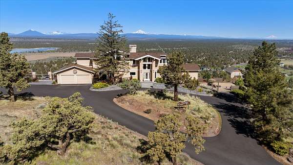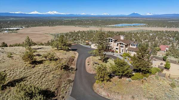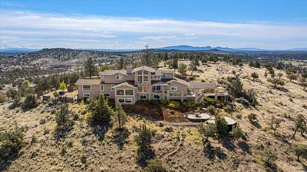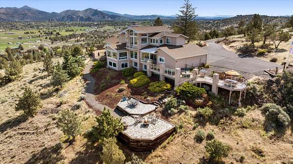 Stunning hilltop estate with 360-degree unobstructed views on top of Cinder Butte! See the Oregon Cascade Range, Buttes, Craters and Smith Rock all from this 3.53-acre property. Enjoy beautiful sunrises and sunsets across green fields, canyons, ponds and vistas in this grand 5,239 sf contemporary home boasting 5 bedrooms and 4 1/2 baths, a loft office and bonus rooms on three levels. The spacious upper-level owner's suite has built-in wardrobes and cabinets and a fireplace, luxurious bath and a bed that rotates 360 degrees. The scenery from every room including the hallway is breathtaking! This must-see property features main floor living, plus a second lower-level entrance to a 3rd ensuite, two bedrooms, kitchenette/laundry, bathroom and family room. New carpeting on every level. Walk from a fenced yard to the flagstone patio for stargazing by the fire after sunset. Make the best memories on the West deck where glass panels maximize Mountain views.