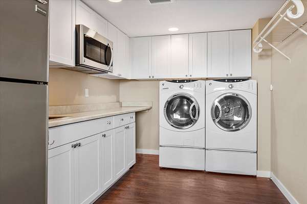 - Cooktop, Dishwasher, Double Oven, Dryer, Garbage Disposer, Microwave, Refrigerator, Washer