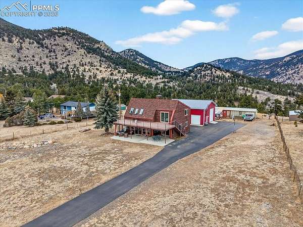 Discover the perfect balance of peaceful mountain living with convenient access to Golden and Denver. With 360 views, this 3 bed/3bath home is located on Douglas Mountain, one of Golden's most unique rural mountain settings. Main level features a dining room with rustic brick floor and wall to wall windows for stunning views, and walk out to the covered concrete patio. Cozy living room is complete with a wood burning stove and lots of natural sunlight. Kitchen includes stainless appliances, pantry, plenty of cabinets and a counter sitting space. Laundry, powder room, mud room are also on the main level along with an office area that could be used as an optional dining room. Large upper-level primary has a 3/4 ensuite remodeled bathroom and a huge walk in closet with shelve space and dressing area. Two additional guest bedrooms share a full remodeled hall bath with gorgeous tile and glass barn shower doors. The guest bedroom facing south has an exit to the generous upper deck where you can enjoy both sun and stars. Set on 2.36 private acres, this horse-friendly property is mostly fenced and connects to a treed area to the north. In addition, this property includes a 1400 SF Shop, greenhouse, chicken coop, shed and a high-producing domestic well and septic system - and no HOA! Outdoor enthusiasts will appreciate being minutes from Centennial Cone Park for hiking, biking, and riding, Despite the quiet, rural feel, the location remains convenient at approximately 15 minutes to Golden and 18 minutes to Black Hawk, making this Robinson Hill property an exceptional opportunity for those seeking space, privacy, and authentic Colorado living! Seller of property is a licensed agent.