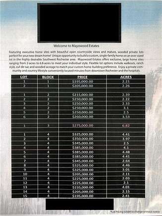 Brand new SW acreage lots available in Mayowood Estates! Acreage's vary from 2 - 6 acres & you can choose from heavily wooded, partially wooded, open w/ views, walk-outs, day windows, & flat lots perfect for an in-ground pool. 11 cul-de-sac lots conveniently located off Bamber Valley Rd. Take the new entrance on Mayowood Estates Dr SW to what is sure to be Rochester's most desirable SW acreage development. Easy commute to Hwy 52 & downtown amenities including Mayo Clinic campus. Choose your lot now & take your time designing your dream home! 24 lots in Phase 1 - don't wait!