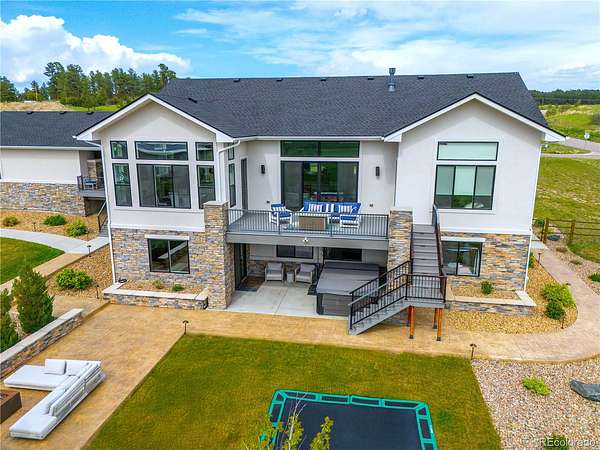 Beautiful modern home in the serene countryside with meadow and mountain views as your backdrop, this custom-built home offers the perfect blend of peaceful rural living and convenient access to the city. Set on an expansive 1.5-acre lot, this 4-bedroom, 5-bathroom home boasts over 4,800 square feet of living space and breathtaking views of the surrounding landscape. Inside, the open floor plan creates an inviting atmosphere with high ceilings and natural light flooding the living spaces. The heart of the home is the spacious kitchen, featuring upgraded appliances, a large island perfect for meal prep or entertaining, and elegant finishes throughout. The adjacent living and dining areas offer ample space for family gatherings or intimate dinners. The finished walkout basement expands your living space even further, with a gym, wet bar, and ample room for recreation and relaxation. Step outside to the beautifully landscaped backyard, which includes a deck and patio area perfect for al fresco dining and lounging, as well as a fire pit for cozy evenings under the stars. For outdoor fun, the property also features a hot tub and an in-ground trampoline, ensuring there's no shortage of entertainment for all ages. The professionally landscaped grounds are fenced and meticulously maintained, adding to the property's curb appeal. The 4-car garage provides plenty of space for vehicles, storage, and hobbies, while offering easy access to the home. Whether you're enjoying the tranquility of country estate living or taking advantage of the nearby city amenities, this home offers the best of both worlds.