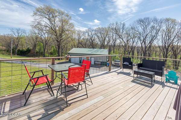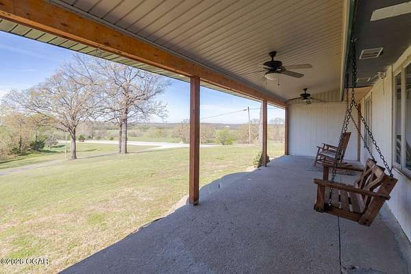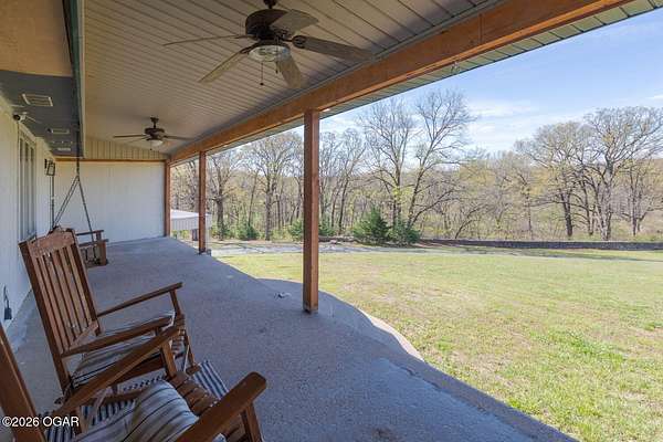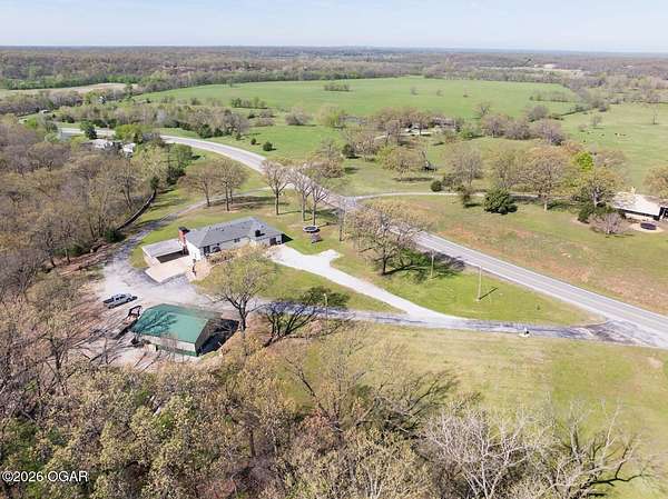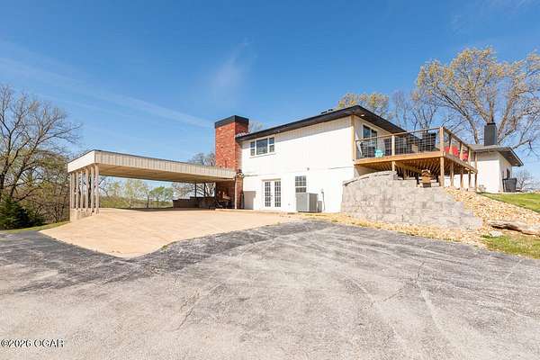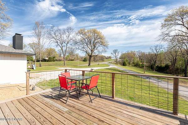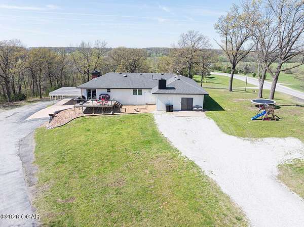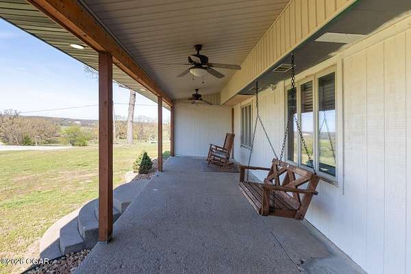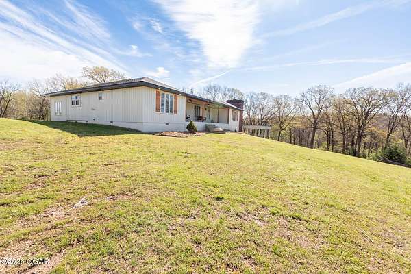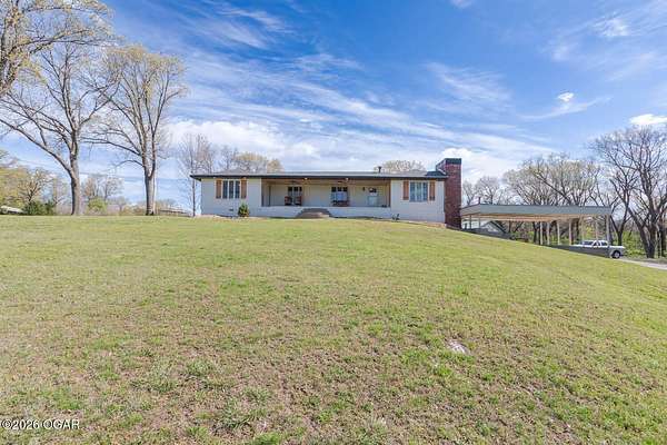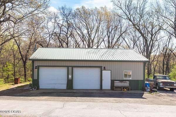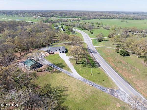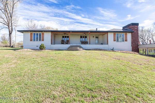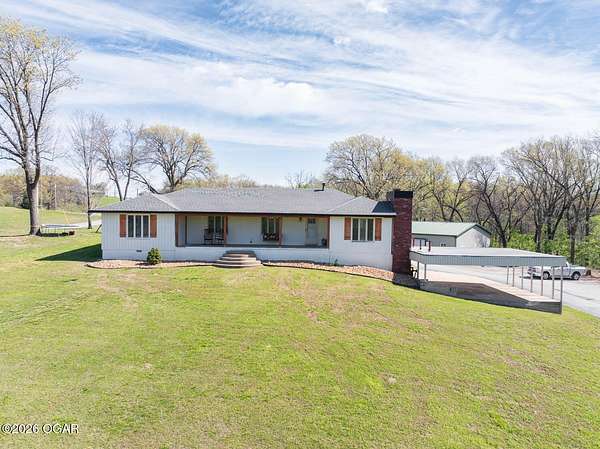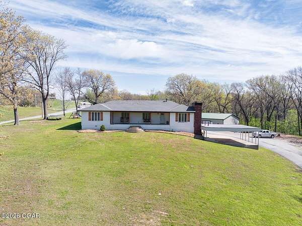 Wow, What a view sitting on your front porch...This remodeled ranch home has 3 bedrooms and 2 baths. Over 2300 square feet with additional space in the unfinished walkout basement for you to make whatever you may need. The primary bedroom and bathroom is beautiful, wait til you see the shower. The walk in closet is huge which is a positive! The floorplan is very open from the kitchen, living and dining room. There are a lot of options. Also, the 2.9 scenic yard is a bonus along with the shop/garage 30x24. The garage also has an office space. The driveway circles around the house and you are minutes from Galena, 10 min from Baxter Springs or Downstream or I 44; a very convenient and easy drive to all. This property has so many positives for anyone looking to live not so close to neighbors. Trees and more trees surround the backside of the house.