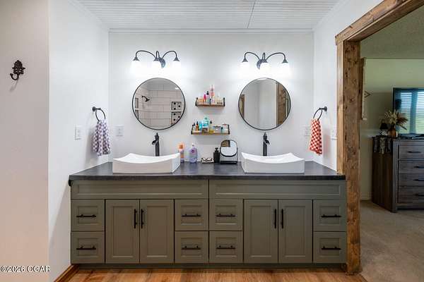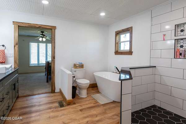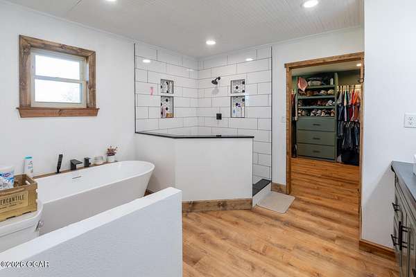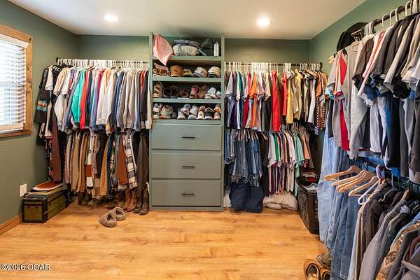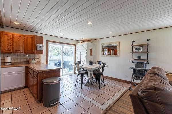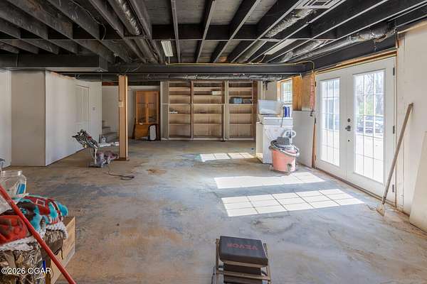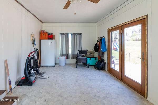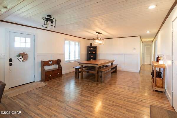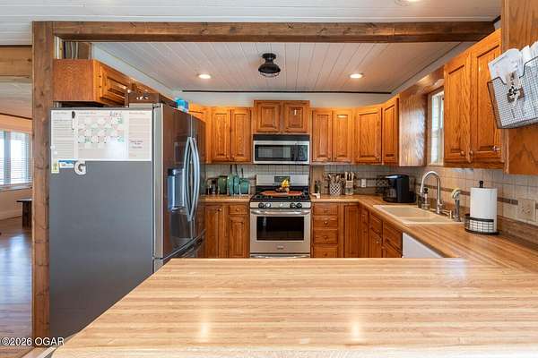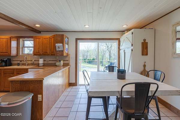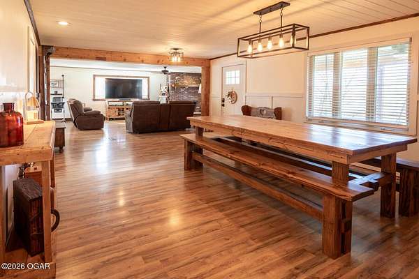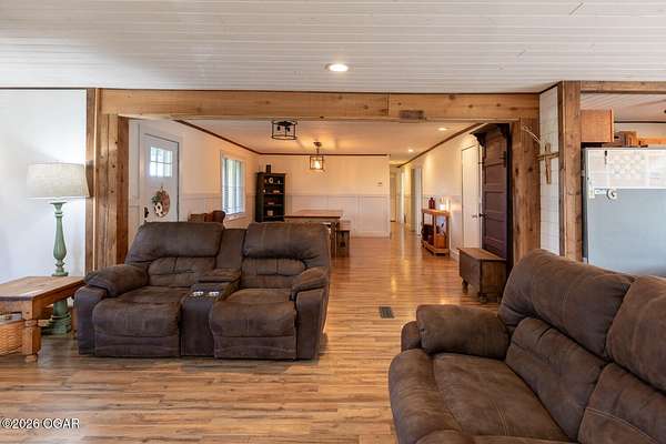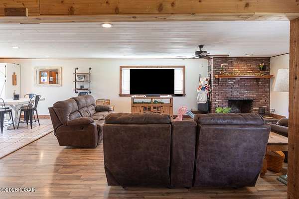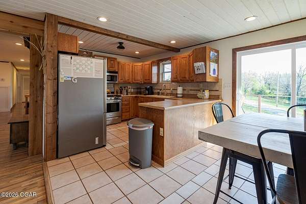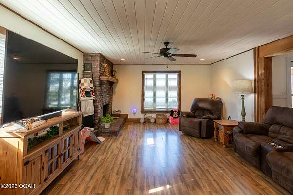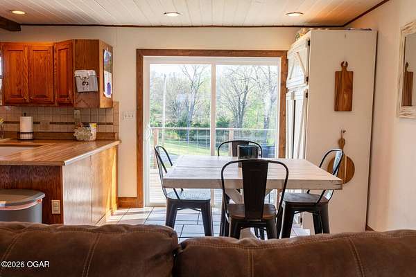 Wow, What a view sitting on your front porch...This remodeled ranch home has 3 bedrooms and 2 baths. Over 2300 square feet with additional space in the unfinished walkout basement for you to make whatever you may need. The primary bedroom and bathroom is beautiful, wait til you see the shower. The walk in closet is huge which is a positive! The floorplan is very open from the kitchen, living and dining room. There are a lot of options. Also, the 2.9 scenic yard is a bonus along with the shop/garage 30x24. The garage also has an office space. The driveway circles around the house and you are minutes from Galena, 10 min from Baxter Springs or Downstream or I 44; a very convenient and easy drive to all. This property has so many positives for anyone looking to live not so close to neighbors. Trees and more trees surround the backside of the house.