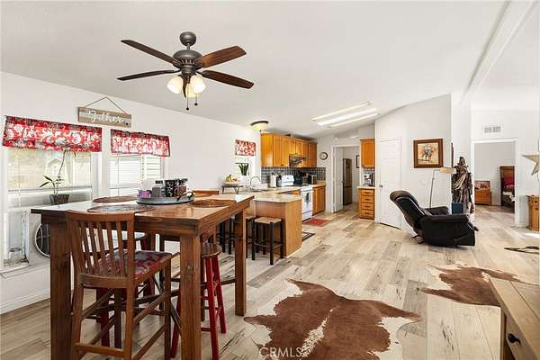 Welcome to your ideal blend of comfort and equestrian lifestyle in Winchester. Built in 2007, this 3-bedroom, 2-bathroom home offers 1,701 square feet of living space. The open floorplan is enhanced by durable LVP flooring throughout, while large windows fill the home with natural light. Practical touches include an indoor laundry room and a mud room, adding convenience for everyday living. The home sits on a 433A permanent foundation. A large Alumawood patio cover provides the perfect outdoor space for relaxing or entertaining after a day at the barn. And the property features a 2-car detached garage and a versatile workshop for multiple uses.