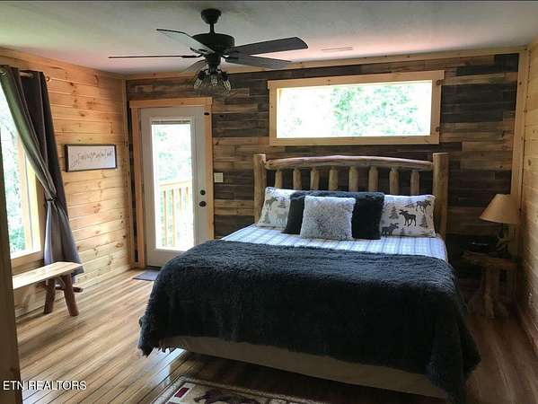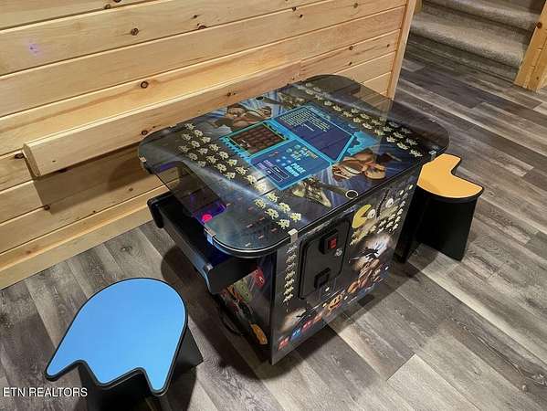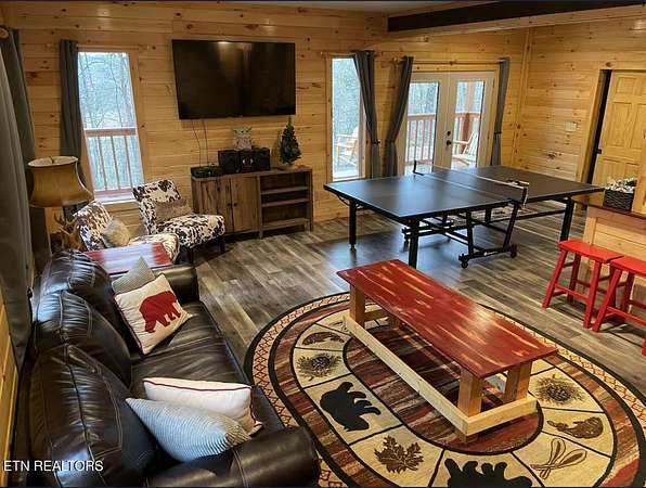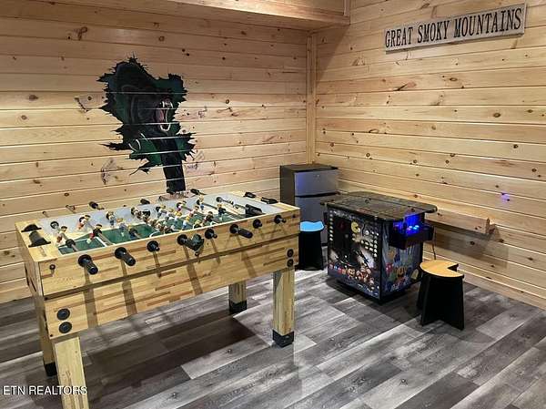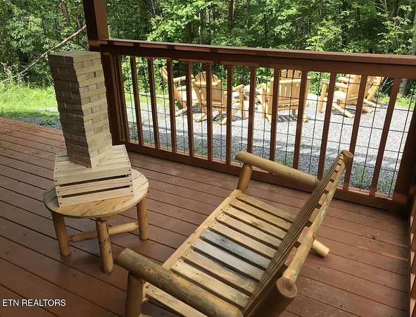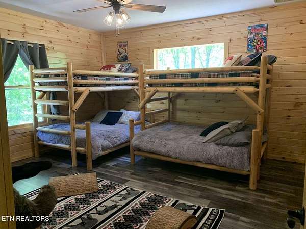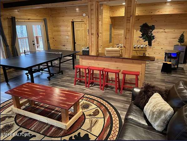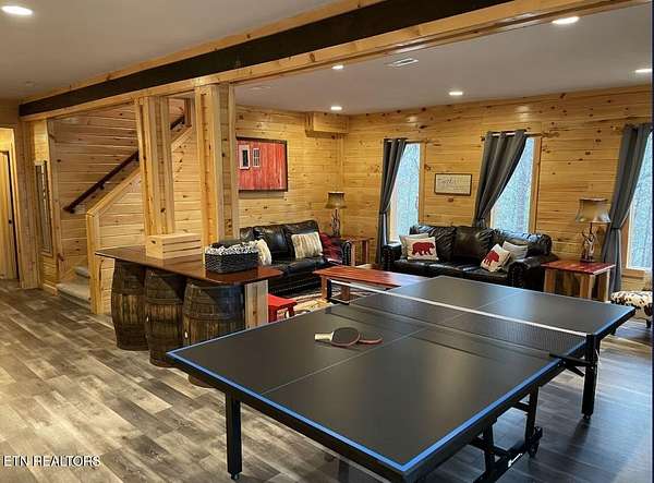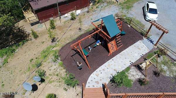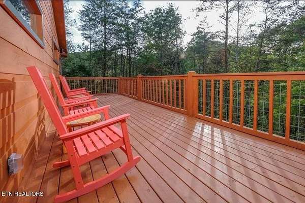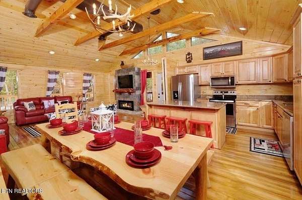 1.52 Acres of Pure Privacy and Fun for All Ages! Feel the charm of a true lodge or ranch the moment you drive up to this spacious, private 4-bedroom, 3-bath home. The entrance welcomes you with a beautiful pergola and split-rail fencing, setting the tone for the fun and relaxation that awaits inside and out. For the young and young-at-heart, the property features an incredible playground that's perfect for kids, adults, and everyone in between! The heavy-duty, custom-built structure includes a tire swing (dream-catcher style), a ''pirate ship'' swing, climbing wall, rope swing, and a thrilling 13-foot slide. Right outside, a front yard A-frame swing offers the perfect spot for relaxation while you watch the kids enjoy their outdoor adventure. The front porch is equipped with a Weber Grill, ideal for grilling up meals while the little ones swing nearby. Whether you're cooking up a feast or just enjoying the fresh air, this space is perfect for gatherings. Inside, you'll find a custom kitchen that is a chef's dream. Stainless steel appliances, fully stocked for every culinary need, and granite countertops make meal prep a breeze. A large granite island with 4 barstools adds extra seating, while the adjacent dining area comfortably accommodates 12-14 guests for memorable family meals. The living room is both cozy and stylish, featuring a flat-screen TV and an electric fireplace for extra warmth and ambiance. Each of the 3 master suites is a private sanctuary, offering flat-screen TVs, walk-in closets, and custom stone walk-in showers with granite accents. Two of the suites are upstairs and open to a massive back porch that spans the length of the house, with four rockers and tables for you to relax and enjoy the view. Downstairs, you'll find another spacious ensuite with a king-sized bed, a flat-screen TV, and a sitting area with a comfy rocker. The two additional bedrooms on this level share a full-sized bathroom with a tub and shower, also featuring custom stonework and granite counters. The home has been recently updated with new real wood floors (installed in 2/2023) throughout, giving it a fresh, rustic feel. The lower level is a true entertainment hub, featuring a theater room, a custom whiskey barrel bar, and a game area-think of it as two large living spaces flowing into one. A mini-fridge and arcade games make this the ultimate hangout for friends and family. Step outside to the back of the house and unwind in the 5-person Nordic Retreat hot tub or gather around the massive fire pit for cozy evenings under the stars. With privacy, fun, and luxury all wrapped into one, this property is a perfect blend of relaxation and adventure.