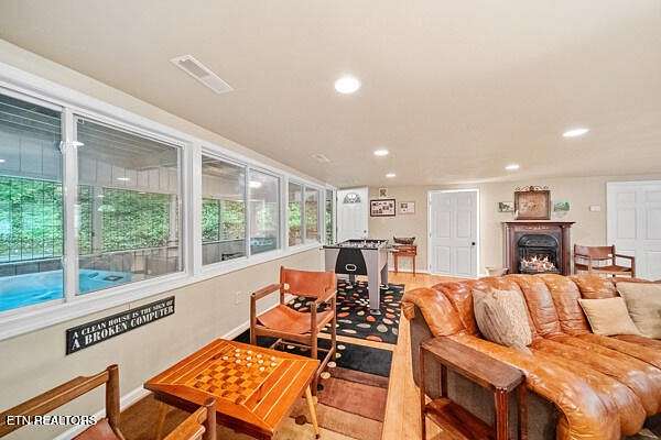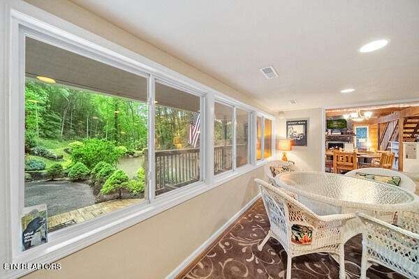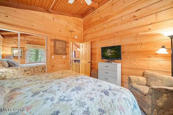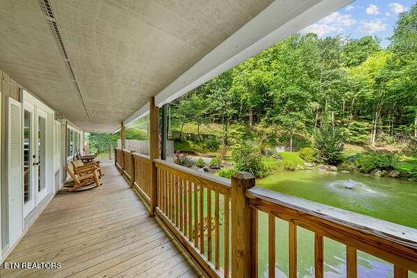 This amazing property in Shagbark has it all! Acreage, Pond, Spring Fed Creek, Cozy Mountain Home!!! The home and setting is absolutely amazing! Welcome to Catch and Release, an amazing and meticulously maintained 3-bedroom, 2-bathroom Chalet / Cabin situated on 3.13 acres with its very own stocked pond, in the peaceful and picturesque Shagbark gated community. This fully furnished three bedroom, two bath chalet has everything you are looking for in your mountain retreat, and so much more! A spring fed creek provides the water to your very own stocked pond. Sit out on the huge front deck overlooking the pond and gorgeous new landscaping, and listen to the peaceful sounds of the brand new fountain as you enjoy your morning coffee. Or sit in the BRAND NEW 5-person hot tub on the fully screened back porch and enjoy the quiet and tranquil back yard complete with everything you came to enjoy in the east Tennessee mountains. There's a new Roof on the back deck too. Once inside you are met with large open spaces and very high ceilings. The living room boasts a 30-foot vaulted rock wall that features one of the gas fireplaces, 42' flat screen TV, surround sound, and DVD. The theater/family/game room has beautiful bamboo hardwood floors, and lots of space to sit and relax. Here you can enjoy a game of foosball, or sit and look out through the glass walls toward the fishing pond and back creek. The kitchen has lots of cabinets, counter space with beautiful slate countertops, breakfast bar, and separate dining room. New refrigerator and dishwasher. Head up the floating stairs to the almost 700sf loft where you can enjoy a game of pool, watch the television down in the living room, or look out over the pond. Two zoned HVAC systems allowing you to separately control the temperature in the main cabin and the family room area. Wireless High-speed internet to keep you connected. Security cameras on premises.