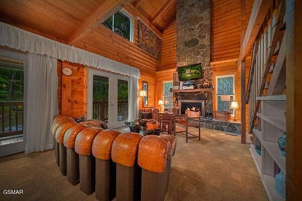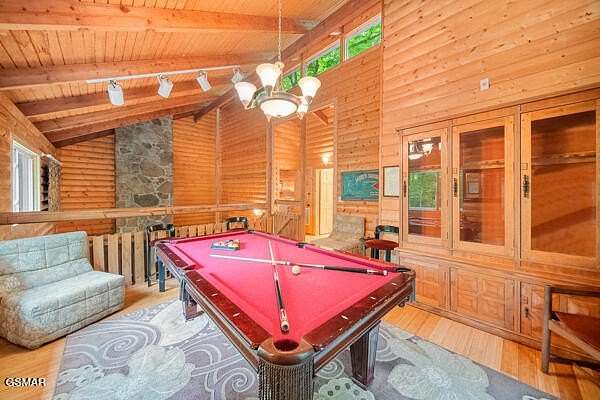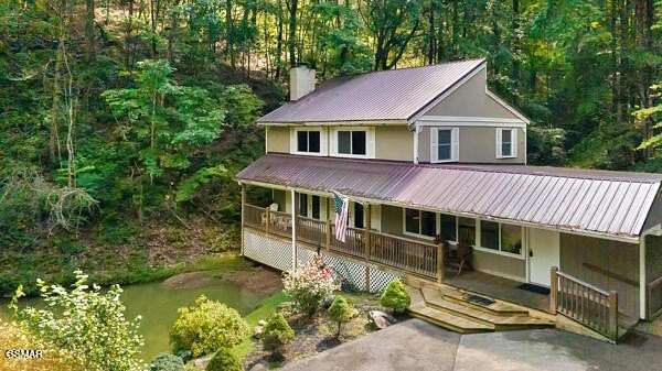 Price Improvement! Bring Offers! This one checks all of the boxes! This amazing property in Shagbark has it all! Acreage, Pond, Spring Fed Creek, Cozy Mountain Home!!! The home and setting is absolutely amazing! Welcome to Catch and Release, an amazing and meticulously maintained 3-bedroom, 2-bathroom Chalet / Cabin situated on 3.13 acres with its very own stocked pond, in the peaceful and picturesque Shagbark gated community. This fully furnished three bedroom, two bath chalet has everything you are looking for in your mountain retreat, and so much more! A spring fed creek provides the water to your very own stocked pond. Sit out on the huge front deck overlooking the pond and gorgeous new landscaping, and listen to the peaceful sounds of the brand new fountain as you enjoy your morning coffee. Or sit in the BRAND NEW 5-person hot tub on the fully screened back porch and enjoy the quiet and tranquil back yard complete with everything you came to enjoy in the east Tennessee mountains. There's a new Roof on the back deck too. Once inside you are met with large open spaces and very high ceilings. The living room boasts a 30-foot vaulted rock wall that features one of the gas fireplaces, 42' flat screen TV, surround sound, and DVD. The theater/family/game room has beautiful bamboo hardwood floors, and lots of space to sit and relax. Here you can enjoy a game of foosball, or sit and look out through the glass walls toward the fishing pond and back creek. The kitchen has lots of cabinets, counter space with beautiful slate countertops, breakfast bar, and separate dining room. New refrigerator and dishwasher. Head up the floating stairs to the almost 700sf loft where you can enjoy a game of pool, watch the television down in the living room, or look out over the pond. Two zoned HVAC systems allowing you to separately control the temperature in the main cabin and the family room area. Wireless High-speed internet to keep you connected. Security cameras on premises. After fishing right outside your door, you can head to the swimming pool (seasonal), tennis courts, pickle ball, playground, and so much more, that you are surrounded with in the Shagbark community. An added plus is the 24-hour staffed guard gate controlling the single entry into Shagbark's 1300-acre resort development. But you're not done yet. Shagbark is located right in the heart of everything you came to enjoy in the Smoky Mountains. You have easy access to Pigeon Forge and Gatlinburg where you can enjoy all of the attractions, shopping, dining, and entertainment galore. Or you can head to Cades Cove, hiking, rafting, and so much more. This chalet / cabin has a fully automated Generac generator system complete with its own 500-gallon propane tank, ensuring you, or your guests, can always enjoy all of the comforts throughout your stay. Another separate 500-gallon propane tank services the cabin's fireplaces, water heater, and dryer. If you are looking for your permanent home, or second home, this one will check all of your boxes. Catch and Release is almost always booked, so if you are looking for the perfect investment property, this one checks that box too. Don't let this one get off your hook. Take the video tour, and book your showing today! *Drone photography used in some photos. *All information provided in this listing is deemed reliable but is not guaranteed. Information has been obtained from the seller and/or third-party sources. Listing broker and agent make no representations or warranties as to the accuracy or completeness of the information provided. Buyers and their agents are advised to conduct their own independent due diligence regarding the entire property, including but not limited to: septic systems, well systems, age and condition of mechanical systems and roof, square footage, lot size, surveys, zoning, permits, taxes, and any other material facts. Buyer is responsible for verifying all information to their satisfaction.