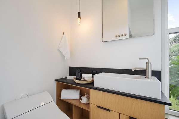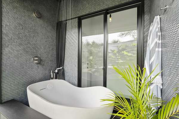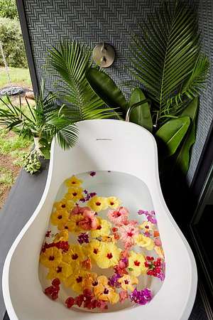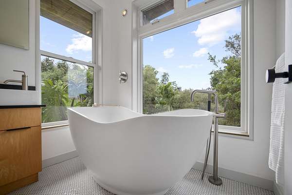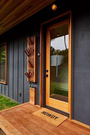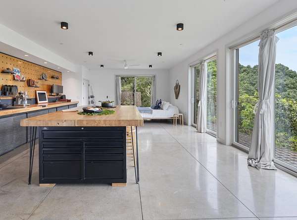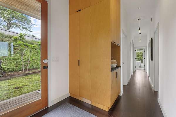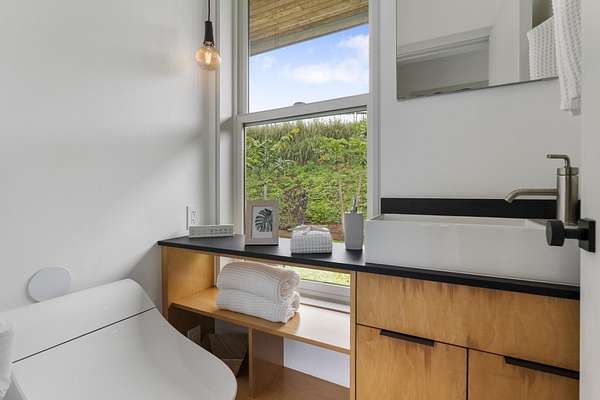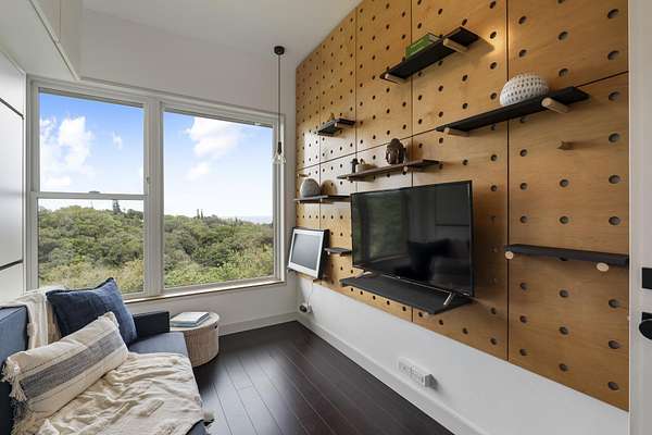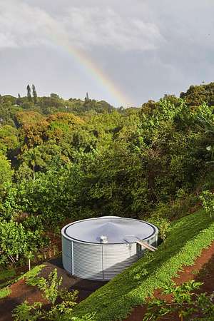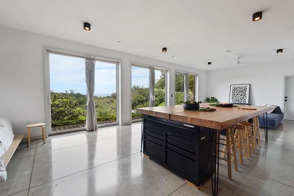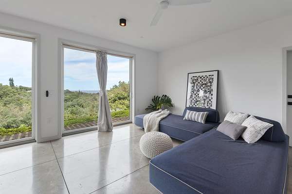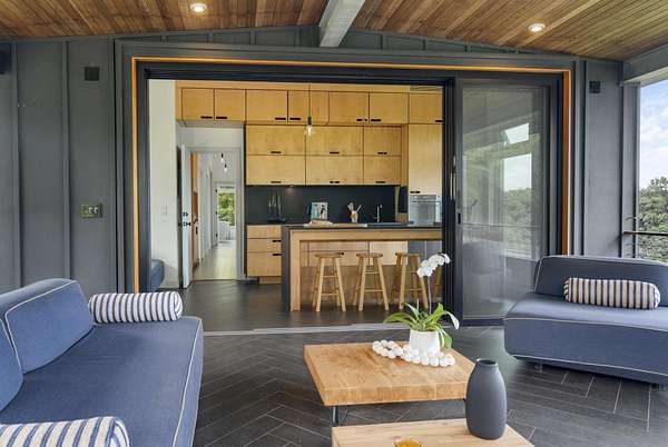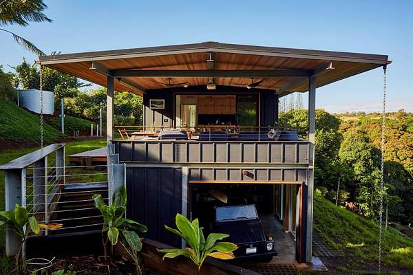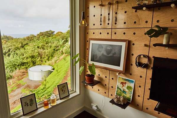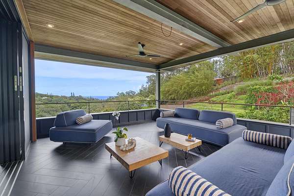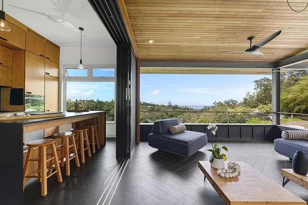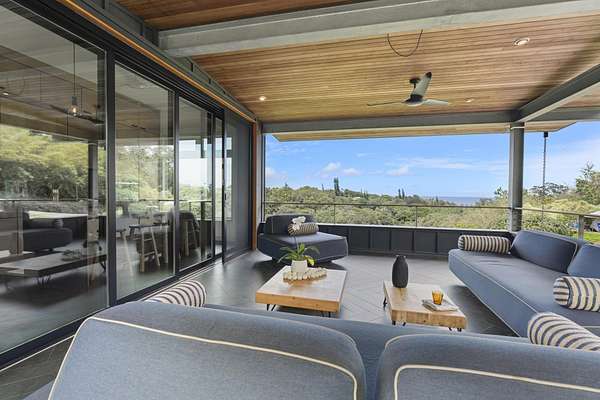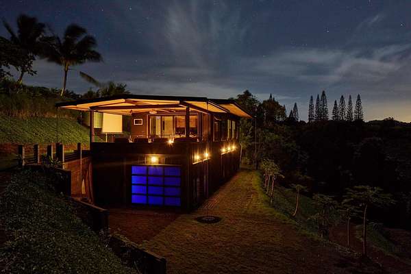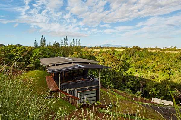 A private 2.2-acre compound in Haiku with expansive forested outlooks, ocean and mountain views. Accessed via a long driveway off a cul-de-sac and set behind an electric gate, the property offers a strong sense of arrival and privacy. Originally designed by Graham Hill (TreeHugger, LifeEdited), whose work on efficient living has been widely viewed through a TED Talk and featured in The New York Times, HGTV, and other media, the property was built as a high-functioning, real-world home combining modern design, flexible living, and independent infrastructure. The total covered space spans approximately 2,750 square feet. The main residence offers 1,008 square feet of living space with four bedrooms, three bathrooms, and open living areas. Three of the four bedrooms feature transforming furniture systems that convert seamlessly between sleeping, working, and living configurations. An approximately 400-square-foot covered lanai connects directly to the interior via a large-format sliding door system that fully opens the kitchen to the outdoor space, allowing the two areas to function as one. An additional 1,344-square-foot garage provides flexible workshop, office, or studio space. The layout functions as a small compound, supporting privacy, guests, multi-generational living, and multiple home offices. Spaces are arranged from public to private, with sound-attenuating construction throughout, including double-layer drywall with acoustic damping compound and a suspended floating ceiling below the main living level, allowing areas to be fully closed off for privacy and quiet. Designed for airflow, durability, and comfort, with natural cross-ventilation and passive design, large six-foot overhangs for shade and weather protection, high ceilings, large picture windows, dual Kohler soaking tubs, and Ipe decking and railings. The home remains consistently dry and well-ventilated, aided by its siting, airflow, and rainscreen-style siding system with an air gap behind. The home operates on a high-capacity off-grid system designed for daily reliability and resilience: 14 kW solar array (36 panels), 48 kWh Blue Ion battery storage, Level 2 EV charger, and solar thermal hot water. Water is supplied by a 20,000-gallon catchment system with double-barrel filtration and UV treatment, plus a county water connection via shared meter. High-speed Starlink internet supports full-time remote work. The 2.2-acre parcel features strong sun exposure, consistent airflow, ample parking for 10+ vehicles, and approximately 40 fruit trees, many actively fruiting, including papaya, mango, avocado, banana, lychee, jackfruit, breadfruit, star fruit, longan, soursop, jaboticaba, and grumichama. Raised garden beds complement the orchard. Additional features include a lower terrace with campfire area, an outdoor shower with forest views, and infrastructure in place for a future approximately 200-square-foot agricultural office or accessory building, including foundation, I-beam, and footing - architectural plans included. A tiny house is currently parked on site and offered separately. Despite its private, tucked-away setting - with expansive greenery, ocean and mountain views, and a strong sense of being removed from it all - the property remains highly accessible: just 2 minutes to Baked on Maui café, bakery, small grocery, and hardware store; 6 minutes to Haiku Marketplace with grocery, gym, restaurants, and shops; 9 minutes to Ho'okipa Beach, known for world-class surf and sea turtles; 12 minutes to a network of North Shore waterfalls; and approximately 23 minutes to Kahului Airport and town amenities. The property is part of a two-unit CPR on agricultural land.