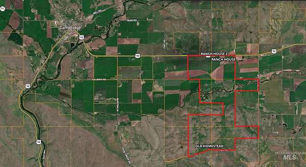 Discover an exceptional opportunity to own 1,265+/- acres of highly desirable contiguous ranchland in beautiful Cambridge, Idaho. This rare legacy property features 450+/- irrigated acres with another 186+/- riverside acres along over a mile of Little Weiser River frontage, and a well-balanced blend of productive hay fields, pasture, a spring, and rolling hills with world-class views. Perfectly suited for a working cattle operation, agricultural investment, or private hunting + fishing retreat, the ranch includes two modest homes, five large hay barns & shops, granaries, corrals, and a historic homesite. The land offers highly fertile soil with excellent senior (1887) priority water rights, flood irrigation, and 3 pivots. Enjoy incredible fishing and hunt an abundance of deer, elk, duck, and quail. Whether you're expanding an operation, creating a family legacy, or seeking a premier lifestyle property with income potential, this ranch offers an unmatched combination of scale, water, recreation, and Western charm.