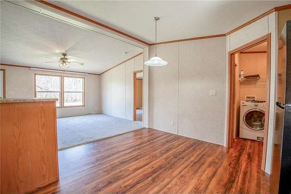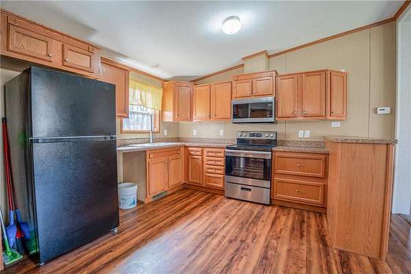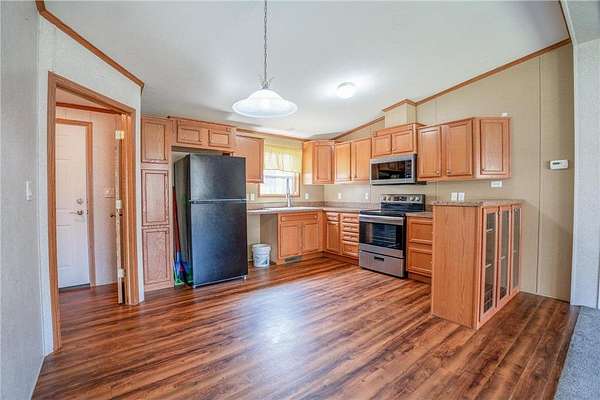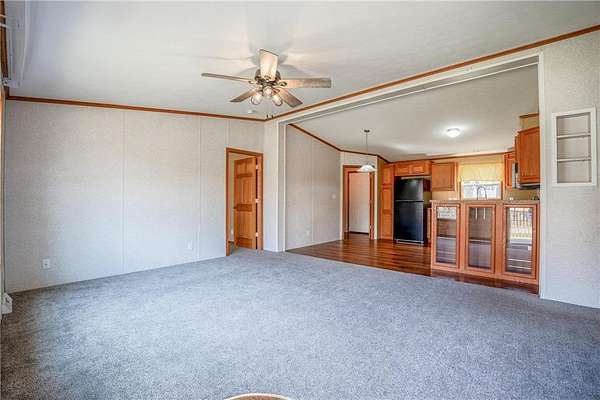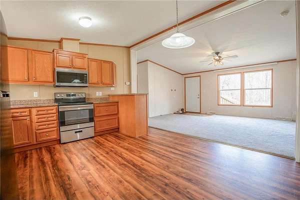 Welcome home to this well maintained three-bedroom, two-bath manufactured home nestled among mature trees on a five-acre parcel.