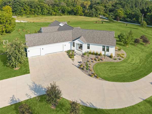 5-Acres Just beyond the official city limits of Waukee, this remarkable estate combines executive-level amenities, serene privacy, and rare development flexibility. Set on 5 meticulously landscaped acres with over 120 trees, this one-of-a-kind ranch home offers expansive outdoor living areas and room to grow. Spacious living with 4 bedrooms plus a dedicated office (easily converted to a 5th bedroom) with Jack-and-Jill bath access. Each bedroom offers either a private en-suite or Jack-and-Jill bath for ultimate comfort and privacy. The primary suite retreat includes heated floors in the spa-like primary bath. The Chef?s Kitchen includes executive-grade appliances, walk-in pantry, and built-in coffee bar. Premium systems throughout including Geothermal heating and cooling, backup generator connected to propane, central vacuum, reverse osmosis drinking water, and whole-house air purification. Two laundry rooms for multi-level living. Outside you?ll find an extended covered paver patio with executive finishes and motorized retractable screens. Built-in gas line for grilling. Heated attached 3-car garage plus oversized detached garage with room for multiple vehicles and RV shelter and 220 port. Full irrigation system and partially fenced yard with an underground dog fence. Thoughtfully designed for discerning buyers, this estate offers sophistication, functionality, and enduring value?a rare opportunity to enjoy luxurious rural living without compromise.