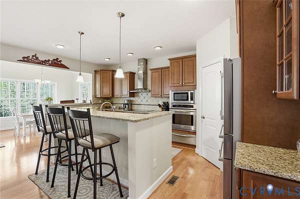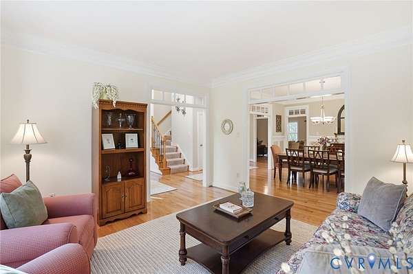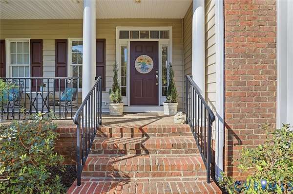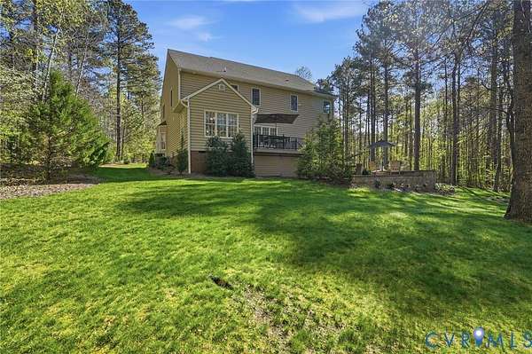 Welcome to your private retreat set on over three acres with peaceful creeks and meandering walking paths. This exceptional property offers more than 4,100 square feet of beautifully designed living space in a truly park-like setting-quiet, lush, and serene-just 20 minutes from Short Pump. The main level features a custom kitchen with premium finishes that opens to a bright, inviting eat-in area. An elegant formal dining room, spacious living room, and sun-filled family room with a gas fireplace provide ideal spaces for both everyday living and entertaining. A main-level bedroom with an ensuite full bath, along with a well-placed half bath, adds flexibility and convenience. Upstairs, the primary suite offers a large ensuite bath and two walk-in closets. This level also includes a loft, three additional bedrooms, two full baths, and a generously sized laundry room. The third floor provides a versatile, fully usable space with a dedicated closet, a walk-in attic, and an additional room with plumbing roughed in for a future bathroom-ideal for a guest suite, office, or recreation space. Outdoor living is just as impressive, with a large composite deck overlooking an 18' x 32' hardscape patio with fire pit-perfect for gathering or relaxing in your private natural setting. Additional highlights include a 2 1/2-car garage, whole-house water filtration system, three-zone HVAC, generator hookup, and a storage shed. Don't forget to check out the video!