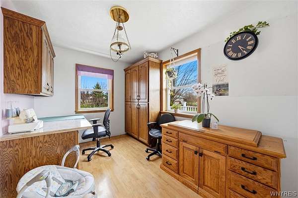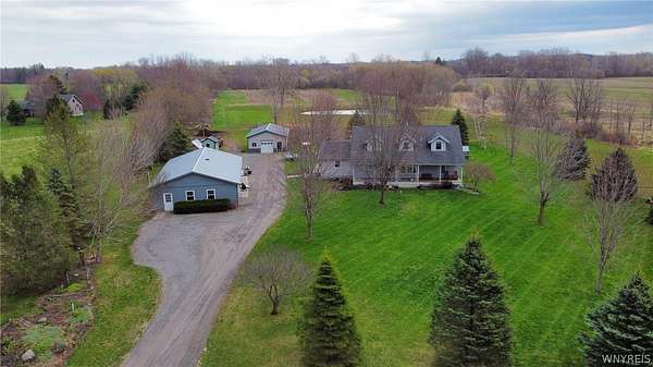 Escape to this enchanting rural retreat, 10-acre hobby farm just outside the Village of Medina, where modern comfort meets the ultimate country lifestyle. This 4-bedroom, 2.5-bath Country Cape is designed for versatility, featuring a main-level living layout with two spacious bedrooms and 1.5 baths on the first floor, including primary suite. Enter side mudroom with half bath on your way to the inviting kitchen-complete with a walk-in pantry-that flows seamlessly into the formal living and dining areas. Sliding doors lead from the dining room and office nook to an expansive back deck, perfectly positioned for morning coffee overlooking your rolling acreage. Upstairs, two additional bedrooms and a generous landing offer the perfect footprint for a playroom or creative studio. Below, the full walk-out basement adds incredible value with its own kitchenette. Outside, the property is a hobbyist's dream: a 24x36 3-stall horse barn and a massive 32x56 heated, insulated shop provide endless space for equipment or livestock. Spend your summers fishing in your 12-foot deep stocked pond, harvesting fruit from your private orchard of peach, apple, and cherry trees, or watching horses roam within the live-wire fencing. From the welcoming front porch to the tranquil back patio, this is more than a home-it's a legacy.
