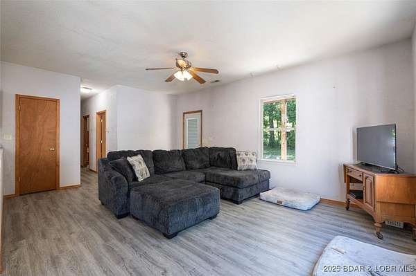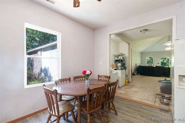 This unique home is designed specifically for someone who is handy, likes to finish projects and wants a private escape with acreage. Featuring 5.59 wooded acres near Laurie, the property offers expansion of the original home into a spacious 3312 sf with 5 bedrooms, 3.5 baths when completed. Original home has 2 bedrooms 1.5 bath, living, dining, kitchen & laundry all recently updated with vinyl flooring. Expansive 9'ceilings and large windows in this area create a private atmosphere surrounded by an abundance of tall trees. The recent addition features 2 bedrooms, a bath and primary bedroom w/bath along with the utility room and an enormous great room. This section is awaiting finishing touches including trim, flooring, bath fixtures and HVAC system. Much of the master bath fixtures are included. The addition's floor plan features soaring ceilings, large windows and sliding doors to extend views of the incredible surroundings. An expansive utility room can handle multiple uses including direct access to the yard, another laundry, pantry or storage. Acreage around the home is wooded with gentle topography and offers multiple options for adding a garage or large workshop.
