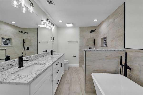 The private primary suite includes a stunning ensuite bath with dual sinks, soaking tub, separate shower, and a walk-in closet. Secondary bedrooms are generously sized, and the flexible floorplan offers space for a home office, playroom, or guest suite.