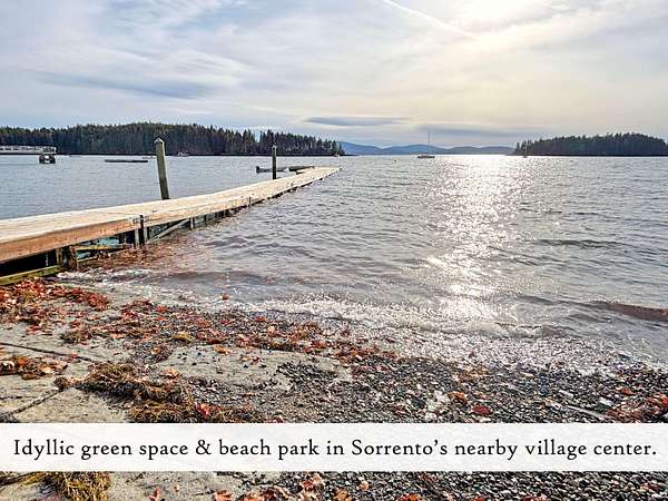 Delight in rural, seaside living at this pristine Sorrento home sited on Flanders Bay. The 3.35 acre lot comes pro designed for a lot division that would have the home on its own 1.32 acre lot and a separate waterfront lot at 2.03 acres. Like two lots in one...see survey for details. Passing through open lawn into beautifully groomed forest, a loop trail with gentle grade brings you to the 265′ of owned bay frontage. Tidal in nature, Flanders Bay offers protected waters for paddle fun when the tide is in, wildlife viewing when the tide is out and serene Maine vistas no matter the tide. Not to undermine the endless trails of nearby conservation areas and Acadia NP, but the trail on site here is a bit like your very own park to stroll. Fenced garden area, heirloom apple trees, level, open space and plenty of parking round out the home's grounds. Inside, a 1st floor room roll call entails entry foyer, full bathroom, kitchen, living room, mudroom & sunroom. Highlights include oak flooring, newer appliances & handsome granite fireplace. Heading upstairs, another bathroom is complimented by a laundry room and joined by 3 bedrooms, including a generous 530 sf, two level master. Oak floors, 4 closets, views to Flanders Bay and a unique layout affords room to roam in the primary bedroom. The 2 vehicle garage is oversized, and will actually fit your truck for once. Dry basement offers ample storage. Major system improvements include all new exterior doors & windows, as well as LP Smart Siding, all in 2021, backyard deck in 2023 and cedar sauna in 2024. This home is fully pre-inspected: home, septic and water & air quality testing is done. Thoughtfully cleaned and move-in ready. Blink Bonnie Golf Links is a 3 minute drive, with an assortment of classic "Summer Colony" offerings just a bit further in the charming village of Sorrento. Be sure to check out 97 listing photos, floor & site plans, an interior & exterior virtual tour and a comprehensive video tour.