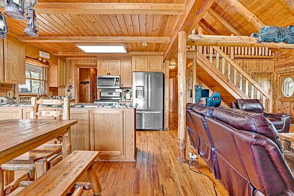 - Fireplace, Security System, Skylight, Vaulted Ceiling