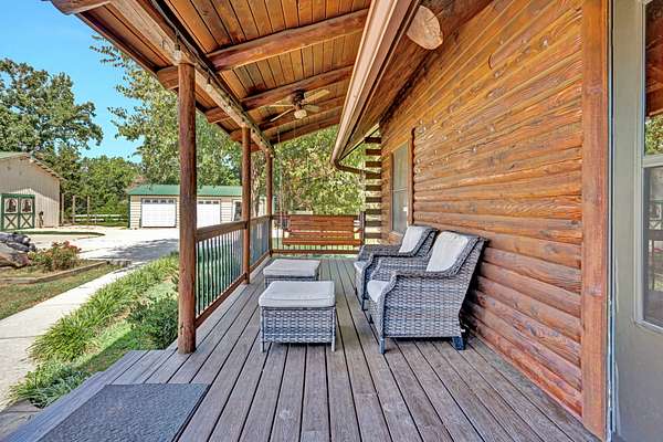 This beautiful 3BR/2BA cedar log cabin and farm rest on 24 acres of pristine pastureland just off Exit 19--only minutes from Greenville. Perfect for country living or income potential, the property features a 7-stall horse barn with water, electricity, and an attached garage, plus a detached 3-car garage ideal for vehicles, storage, or workshop use. A private pond adds to the charm, making it perfect for cattle or horses. Solar panels on the barn power both home and barn, providing excellent efficiency and eliminating your power bill. Inside, rustic charm meets modern comfort with granite countertops, a wood-burning stove, and artisan wood carvings on ceiling beams. All appliances remain. Outdoor living shines with a hot tub, pergola, and wide-open views. Key updates include a new roof (2024, transferable warranty) and new water heater (2025). Sale includes parcels #2200000023 & #2200000032. Endless opportunities await!