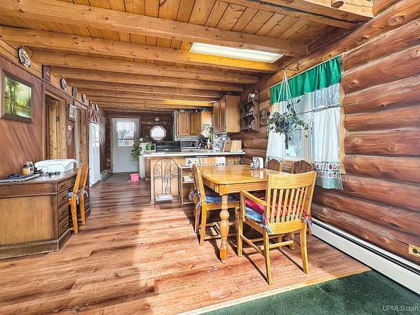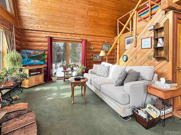 You've found it! A log home set on 10 acres in the country surrounded by thousands of acres of state land, offering true up North living and a prime setup for hunting & recreation. This property features 2 bedrooms, one on the main floor plus a large loft-style bedroom. There are also some non-conforming potential bedrooms in the basesment, providing plenty of room for guests or storage. The open concept living, kitchen, dining areas offer a cozy gathering area centered around a beautiful stone-backed woodstove — perfect for warming up after a day outdoors — while natural light fills the home throughout. Step outside to a well-established landscape with hundreds of perennial flower plantings, frequent deer activity, and the peace and privacy you’ve been looking for. In addition to the metal detached garage, there is an old homestead and chicken coop, adding character and potential for additional storage. All this... located just 15 minutes from Crystal Falls and and just down the road from the massive 5000+ acre Michigamme Reservoir and Way Dam Resort. Enjoy easy access to town while still being tucked away in the middle of it all. Whether you're looking for a year-round home, or weekend getaway, this property checks all the boxes. Schedule your showing today.
