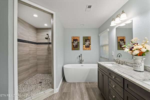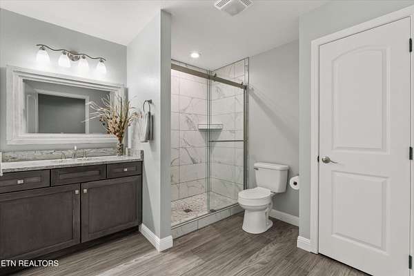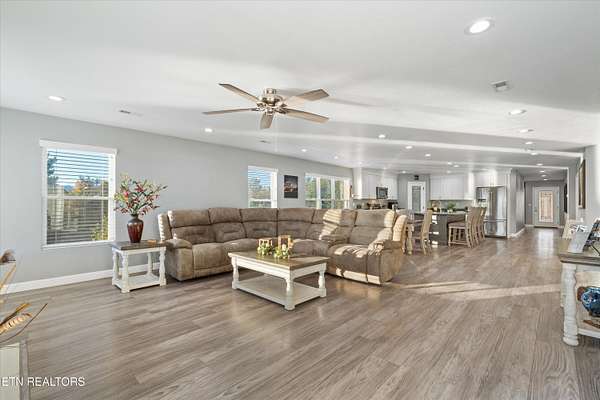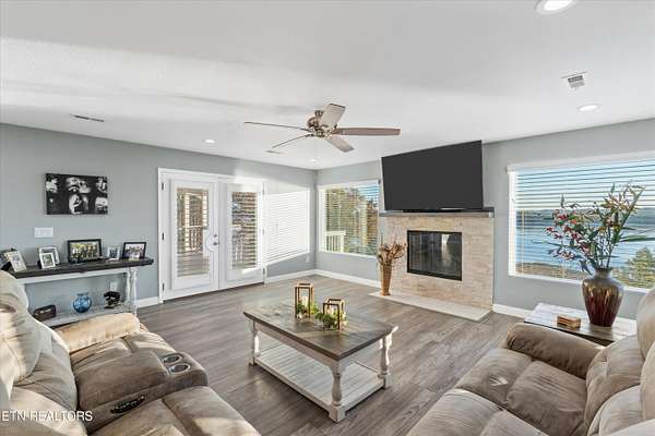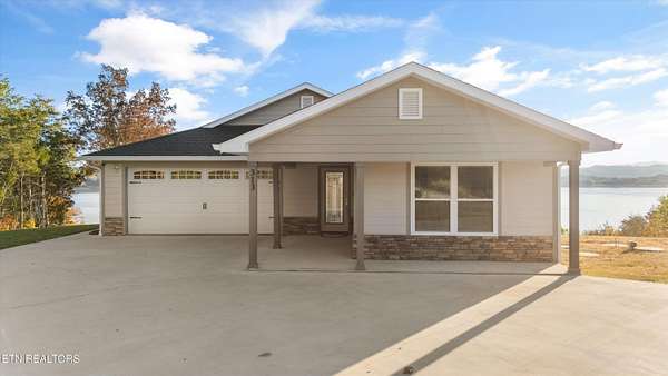 Looking for the ultimate lake life setup? This practically brand-new home on Lake Douglas checks every box and then some! Step inside to discover all main-level living with an open floor plan designed for easy entertaining and relaxing lake days. The kitchen features gorgeous leathered granite countertops, a walk-in pantry, and plenty of space for gathering around the island with friends. Lake views from every room of the house! The spacious primary suite feels like a retreat, complete with a massive tile walk-in shower and a soaking tub that's just begging for bubble baths after a day on the water. In the finished walk-out basement which is accessible from exterior only, you'll find a bright, high-ceilinged basement with its own living area perfect for guests, in-laws, or even a second living quarters. This is an additional 1,200 finished square feet that is not included in the 2,160 square feet of main-level living space. Outside, you'll love the Hardie board siding, the community dock and boat ramp, and the fact that this lot is TVA dockable a rare find! You can even drive down to the water's edge on the property, which makes it ideal for watching fireworks or sunset picnics by the shore. And the extras? A top-of-the-line swim spa that's negotiable (you'll fall in love with it), and if you're ready for the full lake life package, the boat is for sale too! With low HOA fees, friendly neighbors, and year-round water (that just shrinks a little in winter), this is the kind of place that makes every weekend feel like a getaway.