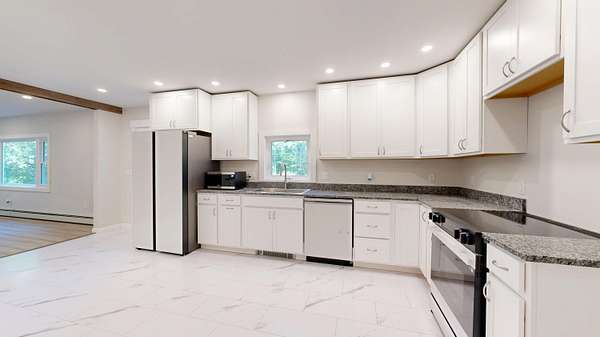 Totally remodeled and move-in ready, this beautifully updated home offers modern comfort in a peaceful lakeside setting. Thoughtfully renovated from top to bottom, improvements include new insulation in all exterior walls, new vinyl replacement windows, new drywall and fresh paint throughout, new vinyl plank and tile flooring, and all-new baseboards. The kitchen features new cabinetry, granite countertops, and new "Bespoke" Samsung appliances including range, refrigerator, and dishwasher. Behind the scenes upgrades are just as impressive with all-new wiring, a new circuit breaker panel, and all-new plumbing with PEX piping and updated fixtures throughout. Recent exterior improvements include a new roof on the garage, a new roof on the back side of the home, and a new deck on the driveway side, perfect for outdoor enjoyment. The home offers 3 bedrooms and 2 full baths, including a primary bedroom with private bath, and an open-concept living room, dining area, and kitchen ideal for everyday living and entertaining. Set in a quiet location, you'll wake to the soothing sounds of loons on Damariscotta Lake just across the street. Summer days can be spent swimming at nearby Damariscotta Mills, while evenings invite stargazing from your own backyard. Conveniently located just minutes to Great Salt Bay School, Lincoln Academy, and the charming downtowns of Damariscotta and Newcastle, this home offers the perfect balance of tranquility and community. This house comes with a REDUCED RATE as low as 4.99 (APR 5.409) as of 02/06/2026 through List & Locka,,c. This is a seller-paid rate buy-down that reduces the buyer's interest rate and monthly payment. Terms applyaEUR"see disclosures for more information. Take a virtual stroll through the property anytime with the immersive Matterport tour and imagine the lifestyle waiting for you here.