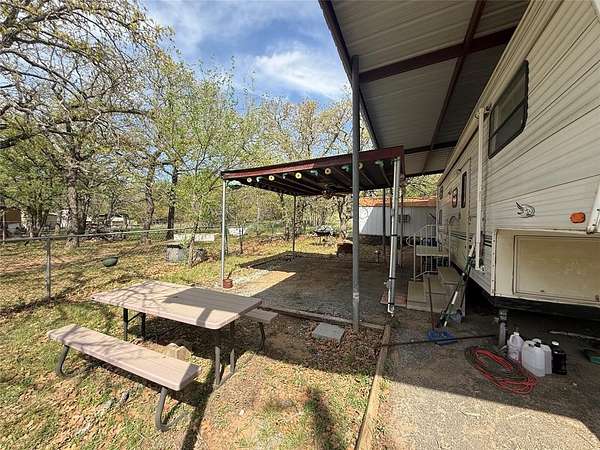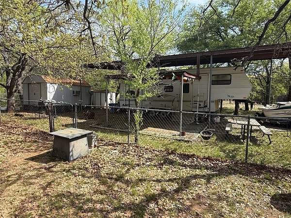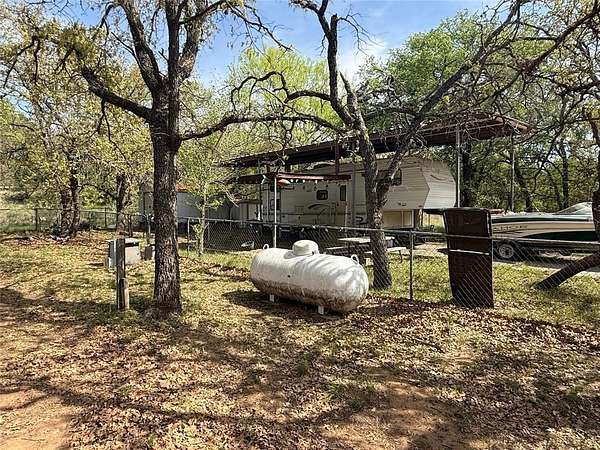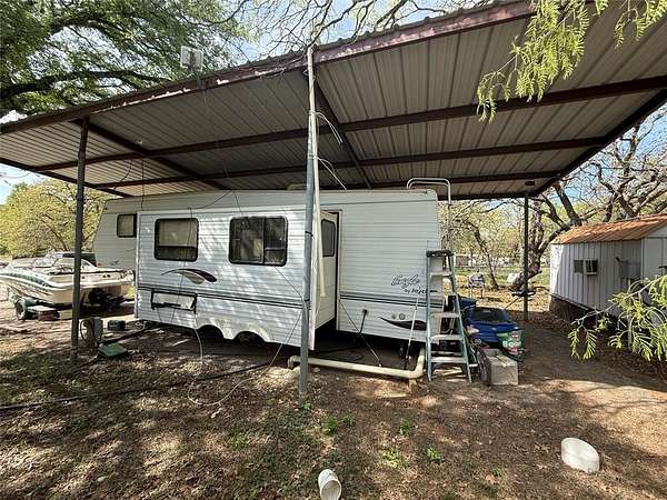 Lake Brownwood getaway at an unbelievable price! RV included! This 4 lot Lake Bronwood retreat is perfect for weekends away from the hustle and bustle and it won't break the bank! The Jayco Eagle 5th wheel is included in the purchase and will comfortably sleep up to 8 people with a queen bed in the front, pull out sofa, 2 bunk beds, and a dining table that makes into a bed for the little ones. It's equiped with everything you need to rough it for the weekend including heat and AC, refrigerator, a propane range, microwave, full plumbing, TV's and more! Outside are 3 storage buildings. One has a shower and electric in it, but the current owner has never used it. The second building features full washer and dryer hookups and lots of room for storage or even an extra refrigerator or deep freeze. The last building is storage for lake toys and essentials. The lot even has room with electric and water hookups for a 2nd RV for additional guests. The RV is covered and has a covered patio area to keep you cool in the summer and provide plenty of room for cooking out and conversation. There is an additional covered area near the 2nd RV hookups, a picnic table, swing, grill and more...it's ready for new owners and new memories to be made! There is also plenty of parking including boat parking inside the fenced area. The neighborhood also has a community pool, boat ramp, boat dock, and even a convenient store and restaurant just blocks away. Your lake retreat awaits at 3120 Flying Bridge Dr!