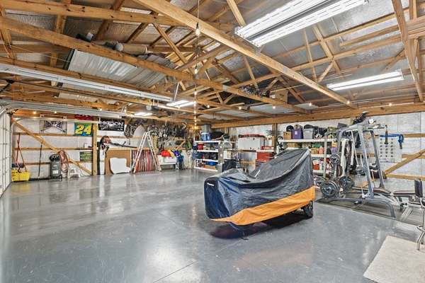 Outside, you’ll find exceptional features including a 30x40 shop equipped with electricity and natural gas heat—perfect for projects or workspace needs. There’s also a 24x40 RV shed with a 30-amp electrical hookup, providing excellent storage and convenience for RV owners.