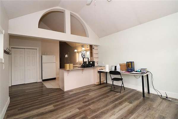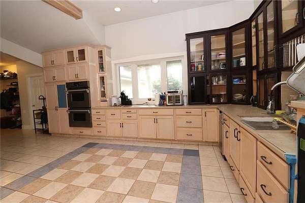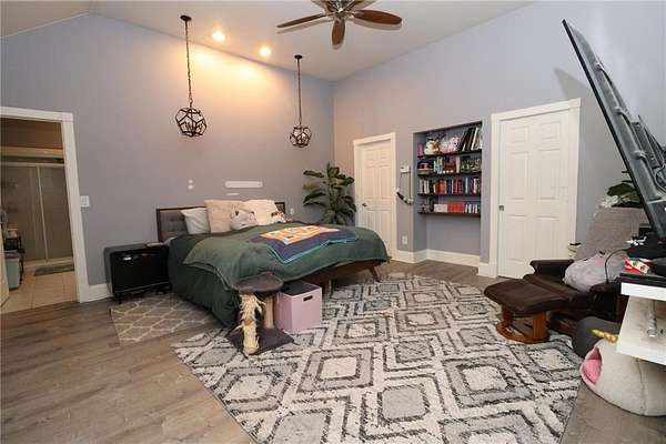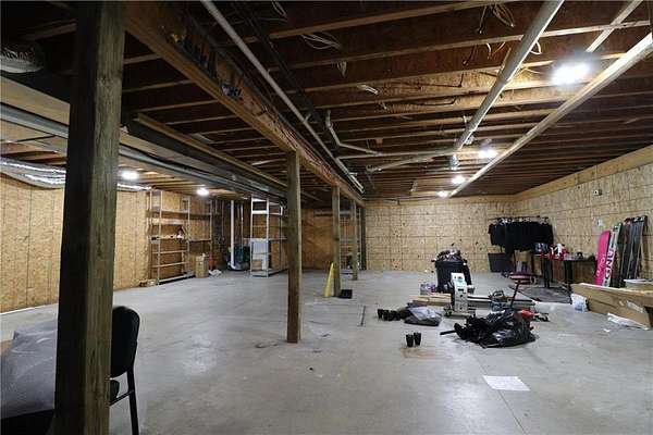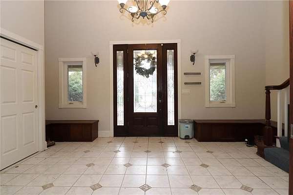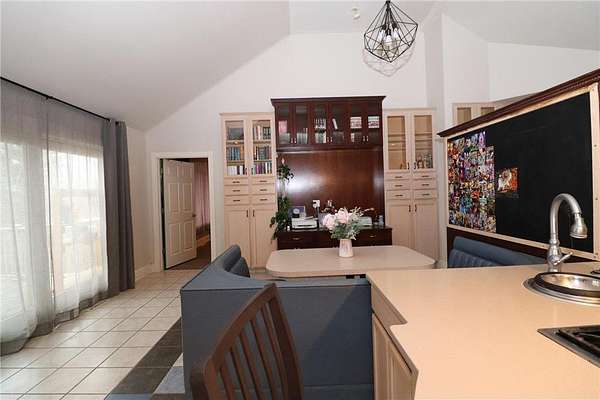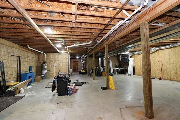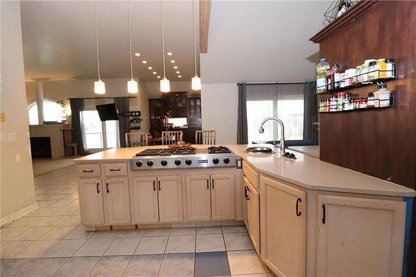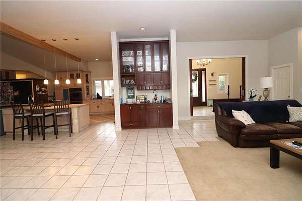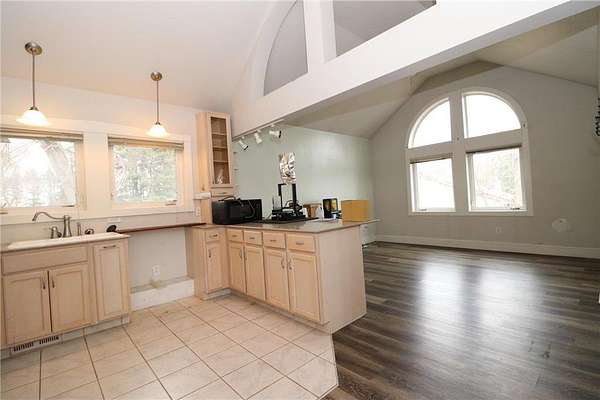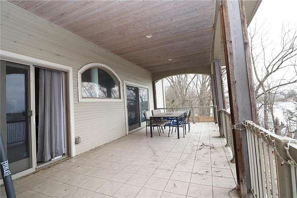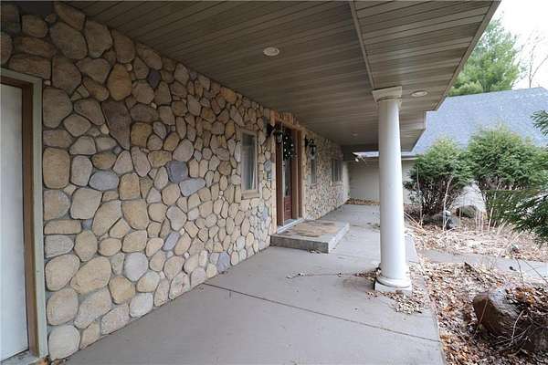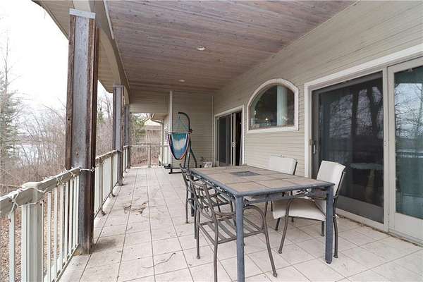 Gorgeous 175' lakefront property on a private 1.54 acre property. Open, vaulted floor plan features a gourmet kitchen w/Jennaire appliances, natural stone countertops, walk in pantry. Dual main floor owners suite and laundry. One level living at its finest! Enjoy the sunsets from your deck. This home is perfect for entertaining! Lower level has 2nd kitchen to make lakefront entertaining easy and accessible! Furnace and AC updated.