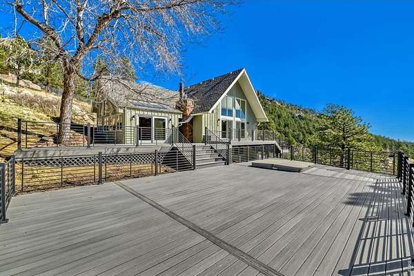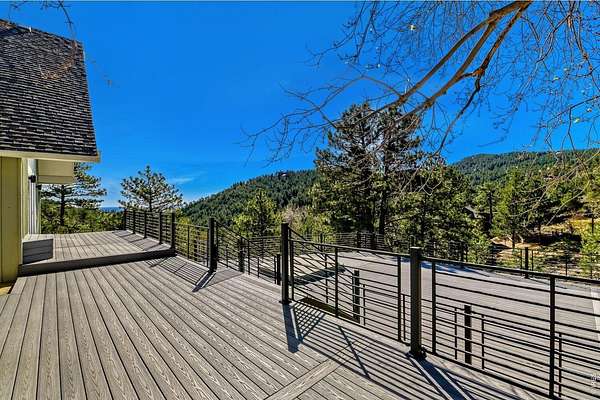 Serene mountain retreat just minutes to the heart of downtown Boulder. Scenic views from every room. Stunning and extensive remodeling featured in this architecturally gorgeous home. High end amenities- Custom cabinetry and tile work, solid surface countertops, and much more. Three bedroom suites, each offer a private bath plus an additional guest bathroom. Impressive living room with large updated windows, soaring ceilings and stone fireplace. Spacious family room with builtins, fireplace and vaulted wooden ceilings. Beautiful hardwood flooring throughout most of the main level. Vast outdoor living space with over 1500 square feet of updated high end composite decking and hot tub. Enjoy the stone patio area off the family room for additional outdoor space. 2 car garage and storage shed. Very private 1.98 acres including almost an acre that is fenced. Pine Brook Hills offers natural gas and it's own water source and reservoir. Only 4 miles to enjoy all that downtown Boulder has to offer. Dining, shopping theatre and more for that perfect mix of mountain living and city conveniences.