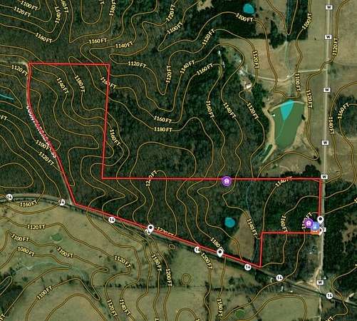 From Dora, go north on 181, turn left on 14, turn right on W, go .1 mile to old house on left in the pines. Property has Hwy 14 frontage most of the way from W to CR 255. Look at aerial, I have 4 white markers for where to pull in off of each highway.