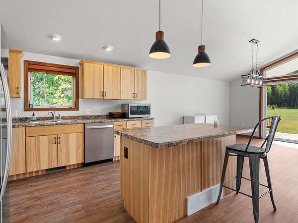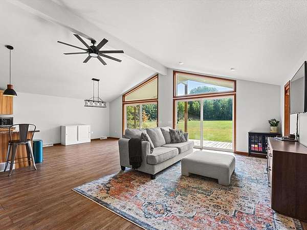Est $3,050/moRural life. Everything you have been looking for. Enjoy a pastoral view over your own peaceful meadow off your 8x28 covered deck. 3.91 acres including an estimated 1.1 acres of wooded area. 2185 sq ft with three bedrooms and two bathrooms. Open concept living with living room, dining area and kitchen. Area with cathedral ceiling and wall of windows. C/Air & individual air unit for those warm days. Two car garage insulated/drywalled/plastered and heated. Do not forget about your 26x36 metal out building to store all your toys. Another benefit is a RV hook-up distribution box if needed. Century link used for TV & Internet.