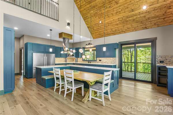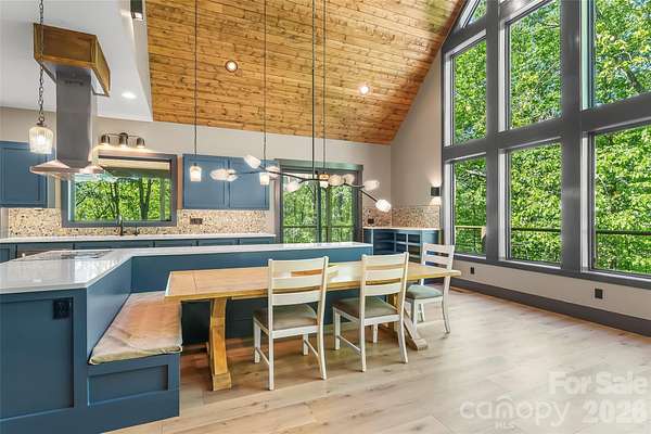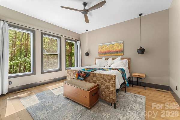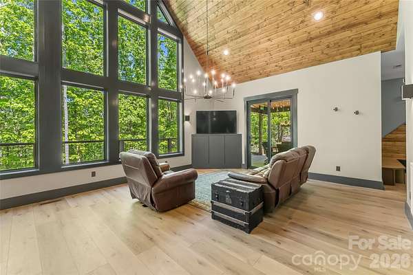Welcome to your mountain top retreat on 7-acres. This exceptional 2024-built home offers the perfect blend of privacy, luxury, and modern efficiency. A gated entrance welcomes you along a graded gravel road leading to a paved circular drive setting the tone for the impressive design and thoughtful details throughout this 4,252-square-foot home. A spacious entry off the covered porte cochere-equipped with two EV chargers-adds both function and style. Step inside to a grand open great room featuring soaring ceilings and dramatic floor-to-ceiling windows that frame breathtaking natural surroundings and flood the space with light. Blue Ridge views open in the winter but once leafed out, the tress create a private sanctuary. The heart of the home is a chef's kitchen outfitted with quartz countertops, abundant cabinetry, an induction range and double refrigerator/freezers. The main-level primary suite is complete with a double-sided tiled shower, dual sinks, and an expansive walk-in closet conveniently connected to the laundry room with built-in storage. Upstairs, a versatile loft space is complemented by a pocket office and two generously sized bedrooms sharing a full tiled bath. One bedroom features a walk-in closet with a charming access door to a finished attic space-perfect for storage or a creative hideaway. The lower level expands the living space with a large recreation/family room, a full bath, and an additional flex room ideal as a guest bedroom or office. Step out to the lower patio, already wired for a hot tub and enjoy outdoor living off the main level with covered and open wraparound decking, perfect for dining & relaxing. Exterior amenities, including additional covered parking, a gravel RV pad with well and septic hookups, and a level area previously used as a horse riding ring. Sustainable and practical features include Tesla solar panels with back up battery, power and plumbing for a whole-house wood-burning furnace, fruit trees, and a storage shed. This one-of-a-kind property delivers modern mountain living at its finest-private, quiet & designed for comfort. Just 10 minutes to downtown Morganton for shopping, restaurants and entertainment. Less than 10 minutes to I-40 access-1.5 hours to Charlotte and one hour to Asheville.