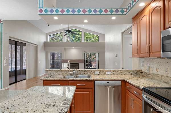 Stunning Acreage Pool Home in Pine Ridge's Premier Equestrian Community! Set on just under 3 private acres and surrounded by mature trees, this spacious 3 bedroom, 3 bathroom pool home with a dedicated office offers tranquility and the perfect setting for horse lovers within one of Citrus County's most desirable acreage neighborhoods. Step inside to a bright, welcoming foyer where you'll find the private office, a generous formal dining room, and a comfortable sitting area. The split floor plan features a spacious primary suite with two walk-in closets and a large en-suite bathroom. The kitchen is a cook's dream, offering abundant cabinetry, granite countertops, ample prep space, and an ideal layout for entertaining. The inviting living room, complete with a cozy fireplace, flows seamlessly to the screened patio. Two oversized guest bedrooms, two additional full bathrooms, an indoor laundry room, and an extra large 2 car garage provide excellent functionality and storage. Outside, the screened patio showcases pavers, a convenient summer kitchen, and a beautiful sparkling pool overlooking peaceful wooded views. A storage shed is also included. Pine Ridge offers an exceptional blend of privacy, natural beauty, and equestrian-focused amenities, including 27+ miles of riding and walking trails, a full equestrian complex with barns and arenas, and spacious acreage homesites. Even if you're not a horse owner, the community's wide-open spaces, recreational facilities, and peaceful setting make it an ideal place for anyone seeking a relaxed, outdoor-oriented lifestyle. Residents enjoy amenities such as tennis and pickleball courts, playgrounds, community events, and a relaxed, nature-rich lifestyle-all while being just minutes from shopping, dining, and the best of the Nature Coast.