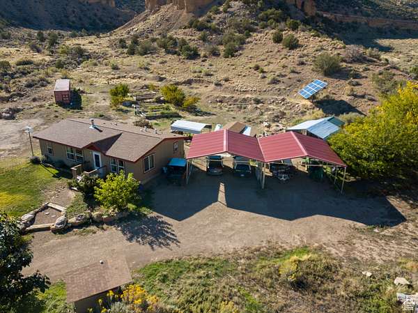Look no further to realize your Country Living Dream! 70 scenic acres available in Thompson Canyon, providing a rare opportunity to live self-sufficiently in a high desert haven. Built in 2016, this 1,179 sq. ft. manufactured home has three bedrooms, two baths, and a permanent concrete foundation. Designed for energy efficiency with an Energy Star wrap, solar and hydroelectric systems, and Starlink internet for remote work and schooling. Grow fresh produce right outside your door with senior spring-fed water rights for domestic, irrigation, and stock use that provide reliable water to six 4'x16' raised garden beds, peach trees, and a small orchard. A root cellar keeps harvests cool and preserved, while two 24'x24' steel carports, a tool shed, and solar house add practical support for off-grid living. Sitting just beyond the renowned Sego Canyon rock art sites, this property is surrounded by open land and native wildlife: deer, pronghorn, bighorn sheep, chipmunks, hummingbirds, and more. Clear night skies reveal the Milky Way in brilliant detail. When you decide to venture off this remote paradise, there is access to Moab (42 mi), Green River (31 mi), and Grand Junction (80 mi). Nearby national treasures include, but aren't limited to, Arches, Canyonlands, the Colorado River, and Dead Horse Point. Whether seeking sustainable living, a creative retreat, a quiet setting ideal for home-based activities, or a private base to explore Utah's canyon country, this property is built to ensure comfort, independence, and natural beauty. Adjacent 20 acres available, see MLS #2062239.