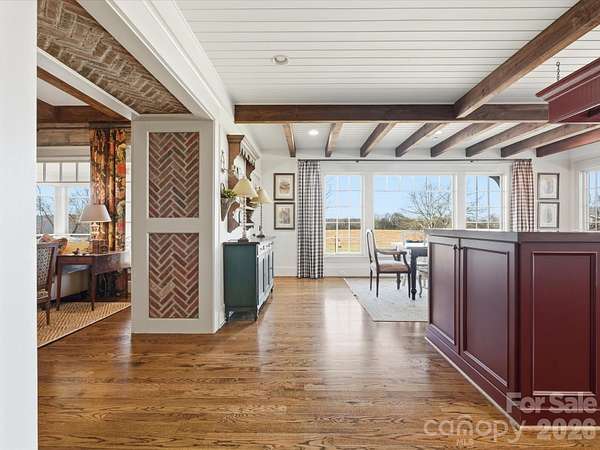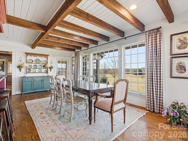 HUGE PRICE ADJUSTMENT! Exclusive gated property on 2 acres with breathtaking views and serene privacy. This custom home welcomes you with a gourmet kitchen featuring double ovens, deluxe range, gorgeous walnut island, KitchenAid appliances, hand-painted tile backsplash, architectural brick accents, and abundant workspace. Enjoy real hardwood floors throughout the main level, custom drapery, custom 100-year-old wood paneling in the living room, and unique designer touches throughout. The primary suite on the main level offers custom closets, floor to ceiling tile shower and separate soaking tub. Step onto the large screened porch from the primary bedroom or kitchen. Upstairs find a large loft and fourth bedroom and two attic walk-outs for plentiful storage. Comfort and quality are enhanced with a whole-home water purification system, encapsulated crawlspace with ozonated air purifier and a recently serviced septic system. Outdoor living shines with an in-ground pool, covered front porch, screened-in porch and patio, and a covered outdoor pavilion with fireplace and grilling area. Additional half bath and a dog shower in garage. Mature landscaping and invisible fencing frames the property and offers room for outdoor enjoyment and relaxation. Donkeys and two horses available for sale upon request. Experience quiet rural living with shopping and dining only 10 minutes away. A truly special property with character and thoughtful upgrades throughout!