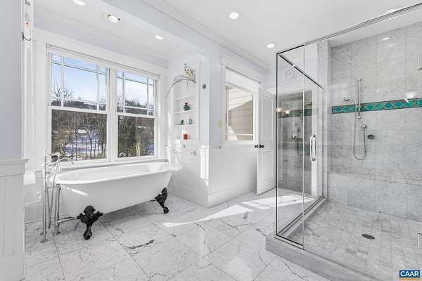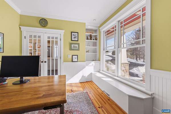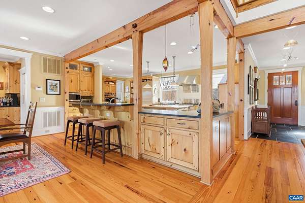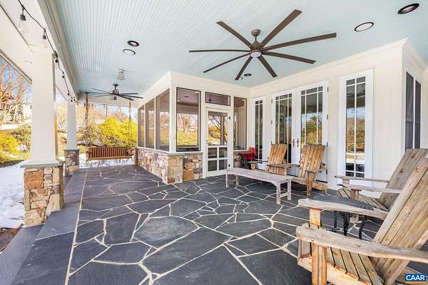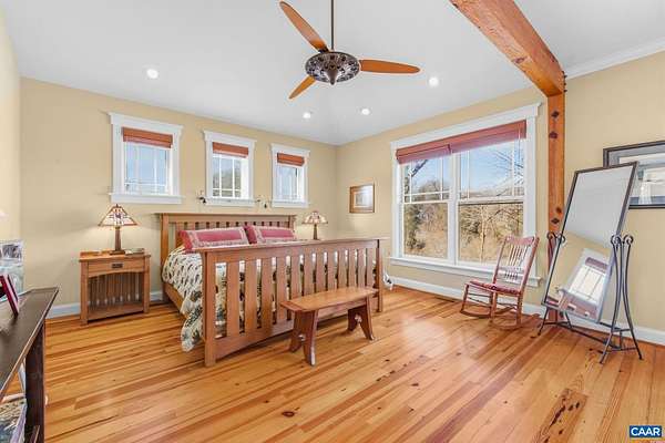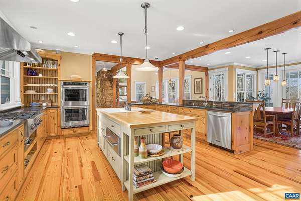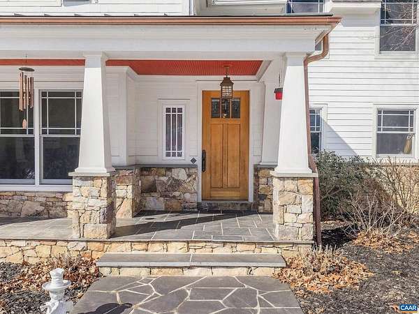 Nestled privately overlooking Blue Ridge views, this totally custom 5 bedroom 4.5 bath Arts & Crafts farmhouse is truly a remarkable offering built by the current owners who spared no expense creating this unique residence. From the beautiful heart pine floors to the incredible dry laid stonework at the massive family room fireplace to the wonderful bluestone terrace & Buckingham slate covered patio & screened-in porch overlooking the views, there are wonderful, timeless finish details at every turn. The 3 car garage is accessed via covered breezeway. A small creek runs along the back of the property. Other noteworthy features incl' an expansive 1st floor primary, whole house generator, fiber internet, and 4 HVAC zones w/ hydrothermal heating w/ ultra-high efficiency gas fired boiler. The large mudroom has sink & built-in cubbies. Flooring incl' heart pine, Buckingham slate & marble. Other notable extras include a wet bar, extensive wainscotting & built-ins incl' window seats. The kitchen showcases completely custom, solid wood cabinetry, honed granite counters, 48" fridge, Wolf gas cooktop w/ commercial hood, warming drawer, double ovens & wooden center island. Please see the detailed list of features in the documents tab.