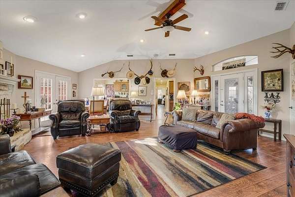 MUST SEE!! This Home is truly a Treasure and Great for Family Entertaining. Spacious Oasis on this 1.6 Acre Corner Lot. Backyard has lots of Trees. Large outdoor Patio great for big Family BBQ's, amazing Sunsets and nights by a Firepit. Large Open Living Room right off of Large Chef Style Kitchen with lots of Counter space and Storage. Beautiful Built in Stained Sideboard Cabinet, Kitchen Cabinets and Granite counter tops. Secondary Primary Bedroom with private Ensuite Bathroom. Lots of Storage. There is a Carport that has and oversized One Car Workshop that Foam Encapsulated, Lots of lighting and plugs, Windows, a Garage Door and 2 Walkout Doors. There are 6 covered Parking Spaces. Wood perimeter fencing around the back and sides. Cummings Generator with propane fuel system. Well with Pump House for irrigations. Homes Security System with Cameras.