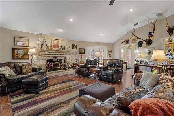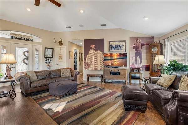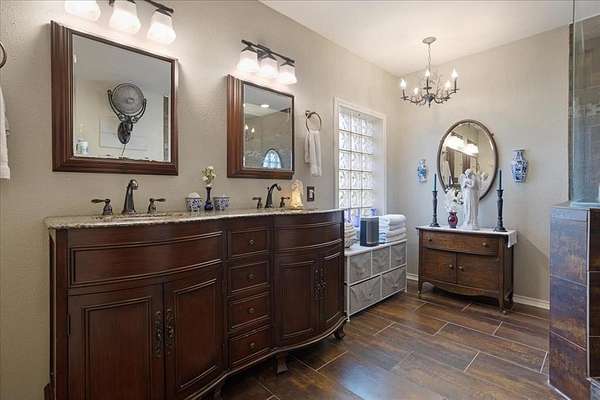 - Built-In Features, Cable TV Available, Cathedral Ceiling(s), Double Vanity, Eat-In Kitchen, Flat Screen Wiring, Granite Counters, In-Law Suite Floorplan, Kitchen Island, Open Floorplan, Pantry, Second Primary Bedroom, Walk-In Closet(s), Wired For Data
