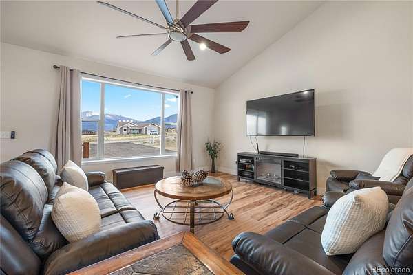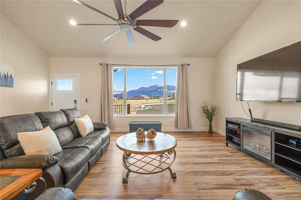 Experience the best of Colorado mountain living in this expansive 3,726 SQFT home--priced at just $251 per square foot--set on 2.18 acres only minutes from downtown Buena Vista. This thoughtfully designed 4-bedroom, 3-bath residence combines generous space, quality finishes, and stunning panoramic views of the Collegiate Peaks. Step inside to a bright, open-concept main level where vaulted ceilings and large windows frame iconic views of Mount Princeton. The living room flows into a spacious dining area and a well-appointed kitchen featuring granite countertops, rich wood cabinetry, a pantry, and access to a wrap-around deck--perfect for outdoor dining and soaking in the scenery. A large laundry room with built-in storage connects to the oversized two-car garage for convenience. The main level includes a guest bedroom, a full bath, and a luxurious primary suite with a 5-piece en suite showcasing dual granite vanities, a soaking tub, tiled flooring, and a walk-in closet.Downstairs, the finished basement is designed for relaxation and entertainment with two additional bedrooms, a full bath, a spacious recreation room with a home theater, pool table, and a custom wet bar complete with a built-in kegerator. The oversized utility room offers flexible space for a home gym or additional storage.Outside, enjoy landscaped grounds, a fenced-in fire-pit area, a storage shed, and your own private hot tub retreat--all surrounded by mountain serenity. High-speed fiber internet keeps you seamlessly connected for work or streaming. Now offering up to $9,500 in lender incentives with the Tree Line Loan Team--use toward a permanent or temporary rate buydown or closing costs!