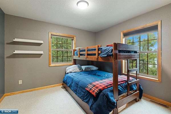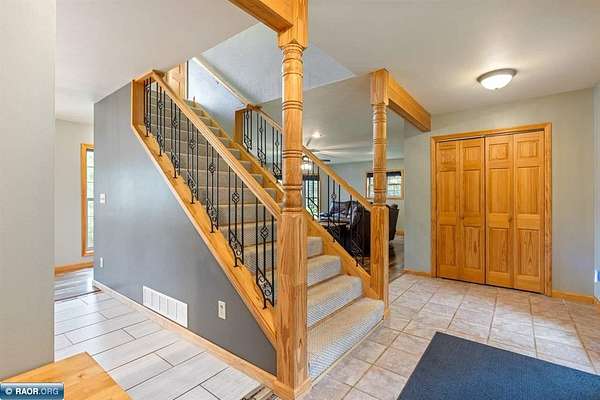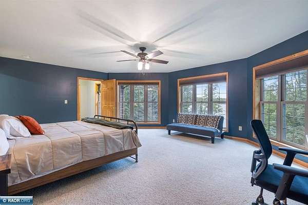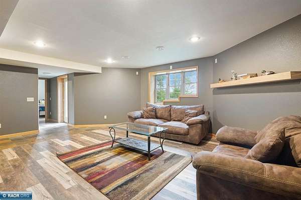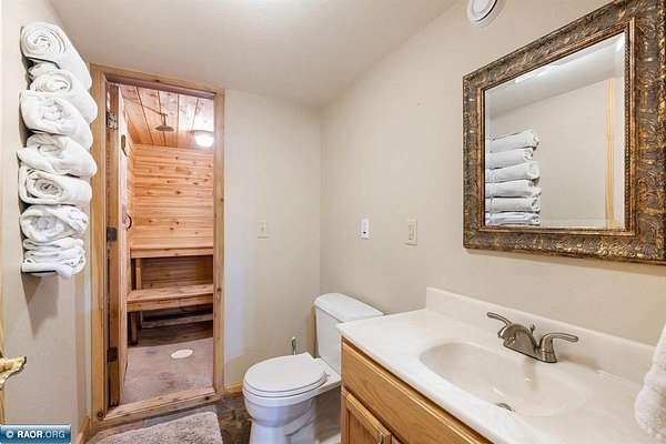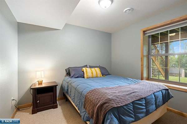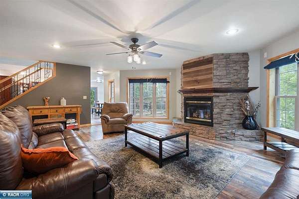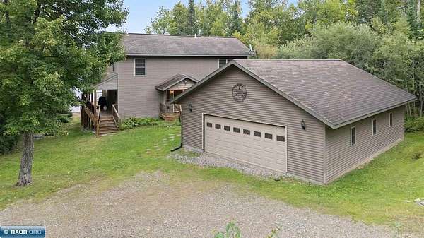 Wake up to stunning sunrises over Snowball Lake from this spacious 5-bedroom, 4-bath, two-story home on a private 2.9-acre wooded lot. The main level features an open living room and kitchen with lake views, a fireplace, and main floor laundry. Upstairs offers three bedrooms plus a full master suite with walk-in closet, jetted tub, and separate shower. The walk-out lower level includes a large family room, two bedrooms, bath, and bonus sauna. Quality finishes, modern updates, and natural light throughout make this home truly inviting. The wrap-around deck, sand beach, fire pit, and maintenance-free dock provide the perfect outdoor spaces for family and friends. An oversized heated garage and shop space offer storage for vehicles, boats, and more. Recent updates include new AC, water heater, refrigerator, dishwasher, sauna, and dock. Located near the Mesabi Trail, this property combines recreation, comfort, and privacy in one.