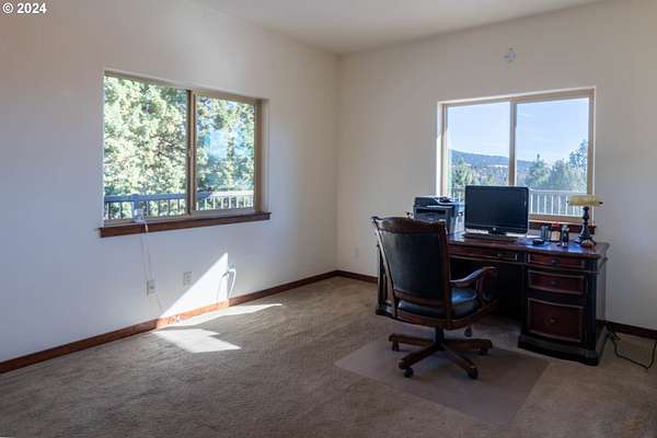 Exceptional Off-Grid Property for Sale on 80.06 Acres Discover a stunning custom-built home from 2006 that boasts breathtaking mountain views. As you enter through the front door, you'll be greeted by a striking vaulted ceiling, expansive view windows, and a lovely juniper mantel. The chef's kitchen features granite countertops, an island, a spacious walk-in pantry, ample cabinetry, and a double fridge and freezer. The residence includes four bedrooms and three bathrooms, with the primary suite offering a walk-in closet that is truly expansive. Enjoy the comfort of heated floors throughout the home. An attached two-car garage provides shelving for extra storage. The Trex decking wraps around the front of the house, allowing you to relish the tranquility this remote property provides. Enclosed garden area and greenhouse featuring a variety of trees, including Apple, Pear, Cherry, Filbert, Plum, Prune, and Apricot. Additionally, there is a 495 sq ft outbuilding currently utilized for wood storage, which could easily serve as an extra garage.Additionally, there is a 1,728 sq ft shop equipped with three large automatic doors, as well as a three-bedroom, two-bathroom guest suite. A standout feature is the 360-degree view from your very own lookout. The diesel generator is approximately a year and a half old, accompanied by 24 top-tier batteries and solar panels. Your fenced property is adorned with pine and juniper trees. This remarkable property will truly leave you in awe with everything it has to offer.